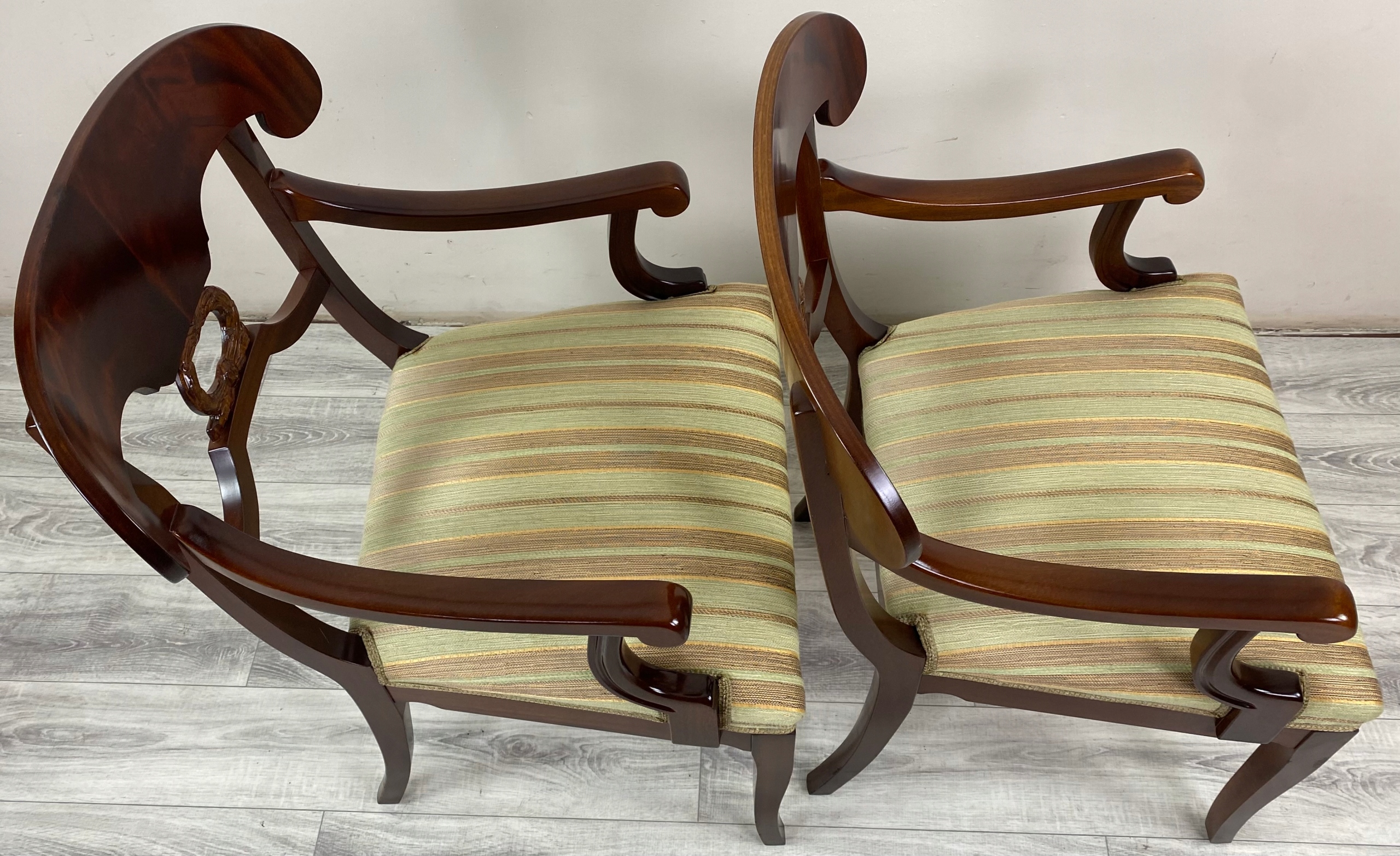 Предметом аукціону є неокласичне офісне крісло з червоного дерева в стилі бідермайер ампір.