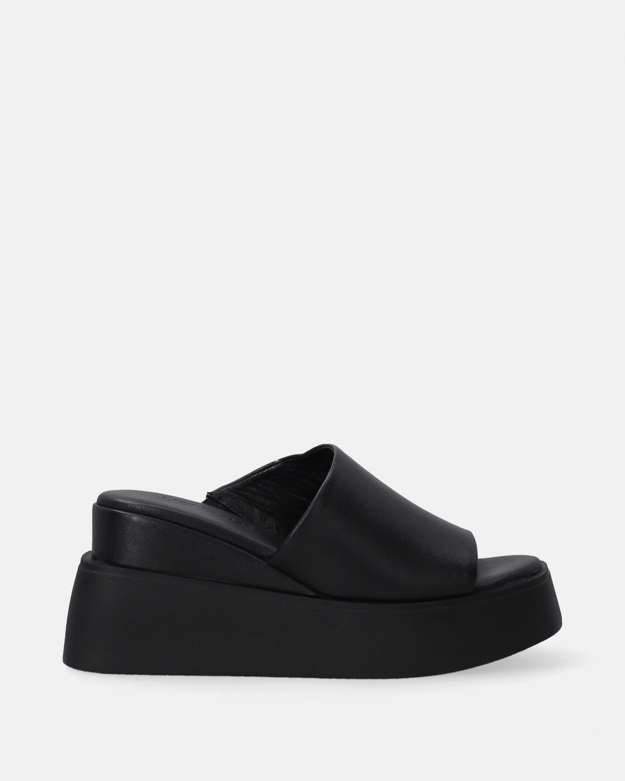 Жіночі шкіряні шльопанці на суцільній танкетці з платформою поєднують в собі модний дизайн і комфорт носіння. Асиметричний верх з еластичною вставкою на підошві додає динаміки силуету та полегшує надягання. Гладка натуральна шкіра підкреслює мінімалістичний, але виразний характер взуття, а рельєфна підошва надає легкості кожному кроці. Ідеально підходить для літніх прогулянок і стильного міського стилю.