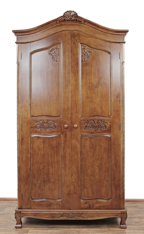 чарівні меблі з зігнутою ногами та красивою різьбою. Він має всередині палиці, щоб повісити одяг.