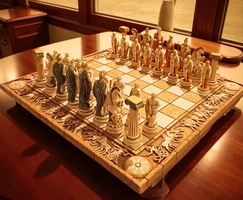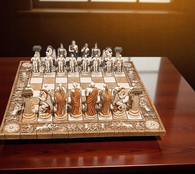 Шахи, імпортовані з Греції; Грецьке виробництво. Вони виглядають фантастично в бежевих тонах з цегляними і зеленими акцентами. Стан дуже хороший.
