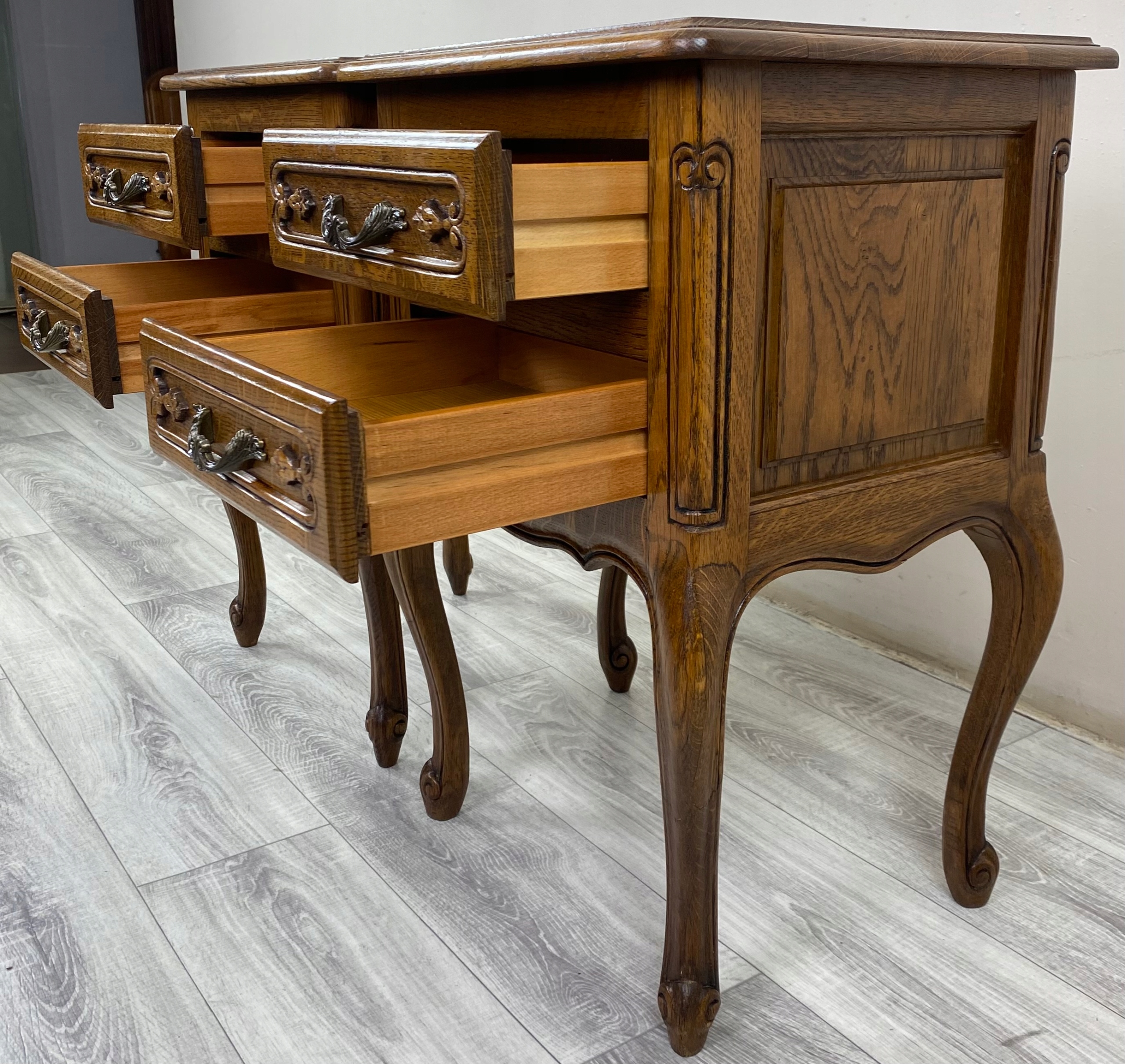 Кожен стіл має дві шухляди, вбудовані в декоративні фрезеровані фасади.