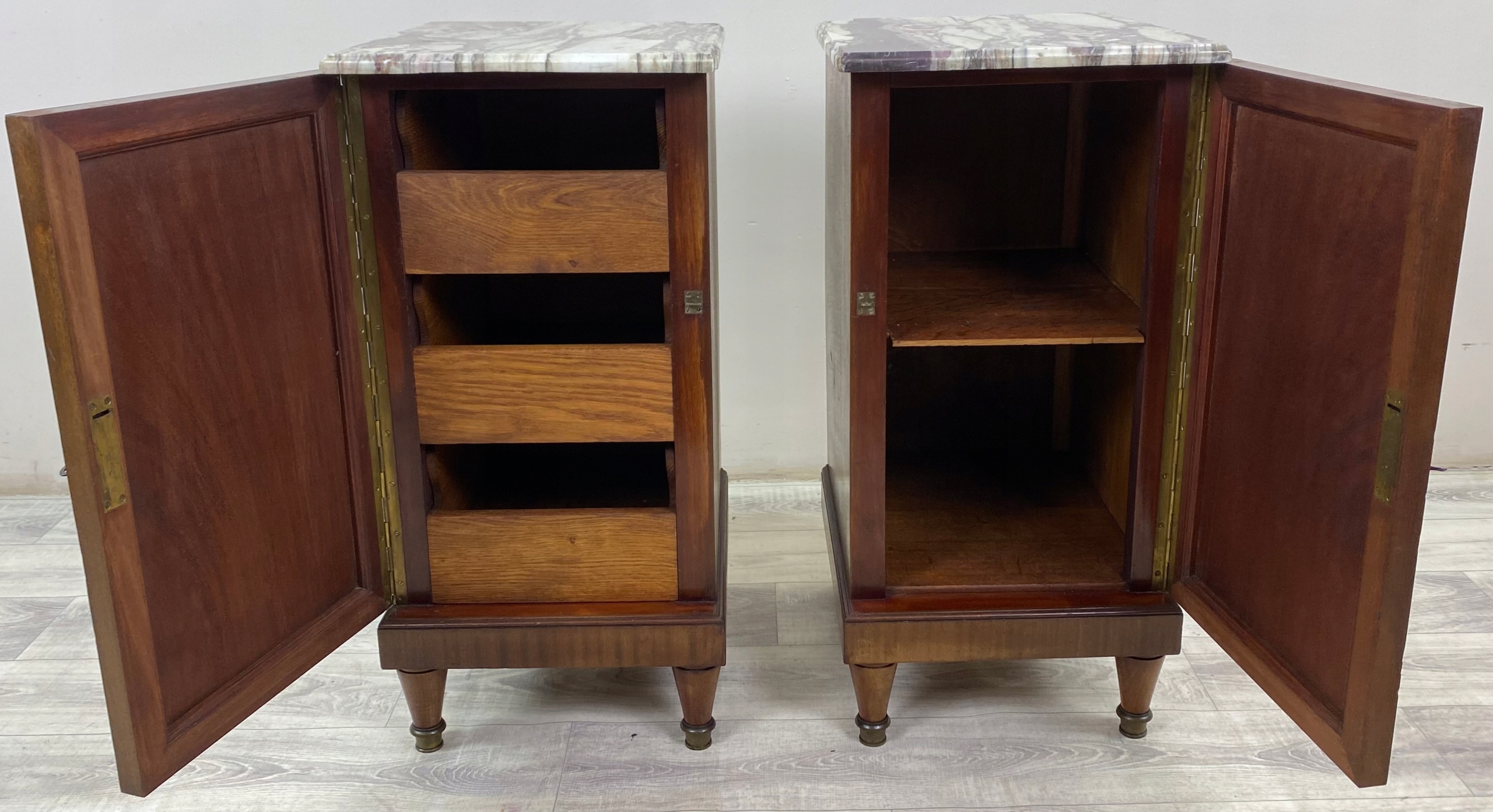 СТИЛЬНІ ТУМБОЧКИ 2ШТ СЕЦЕСІЯ АМПІР СТОЛИКИ МАРМУР ГОРІХ ФРАНЦІЯ GA9