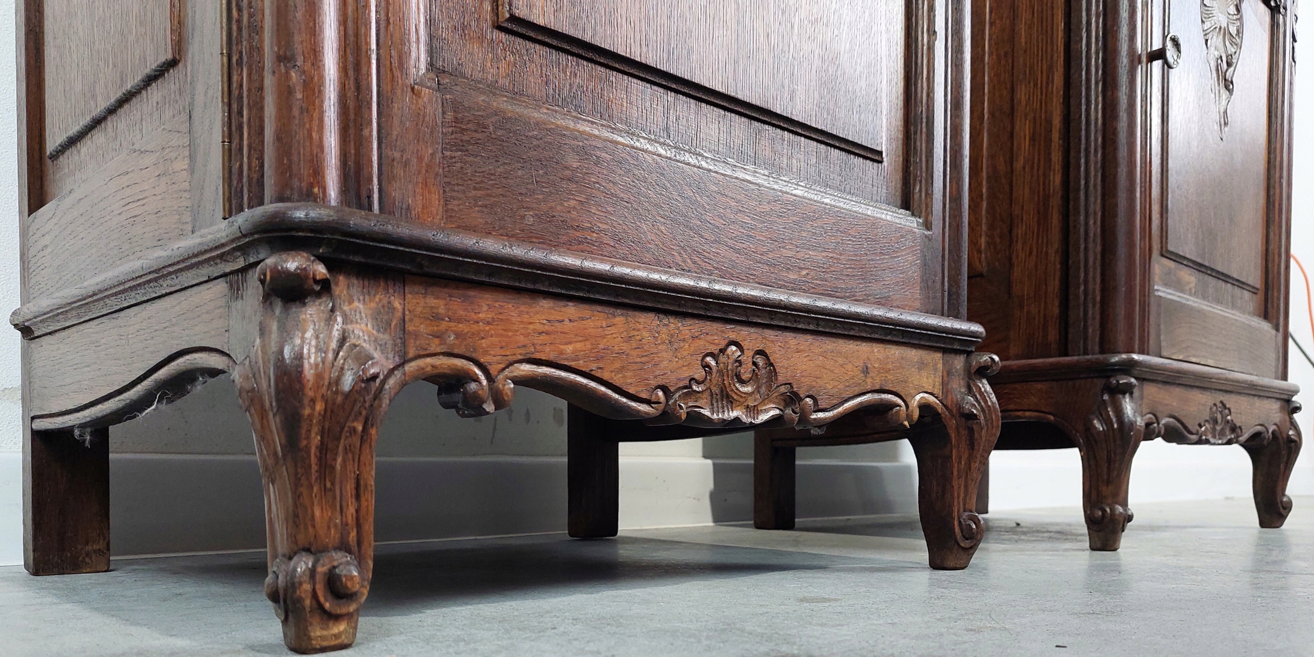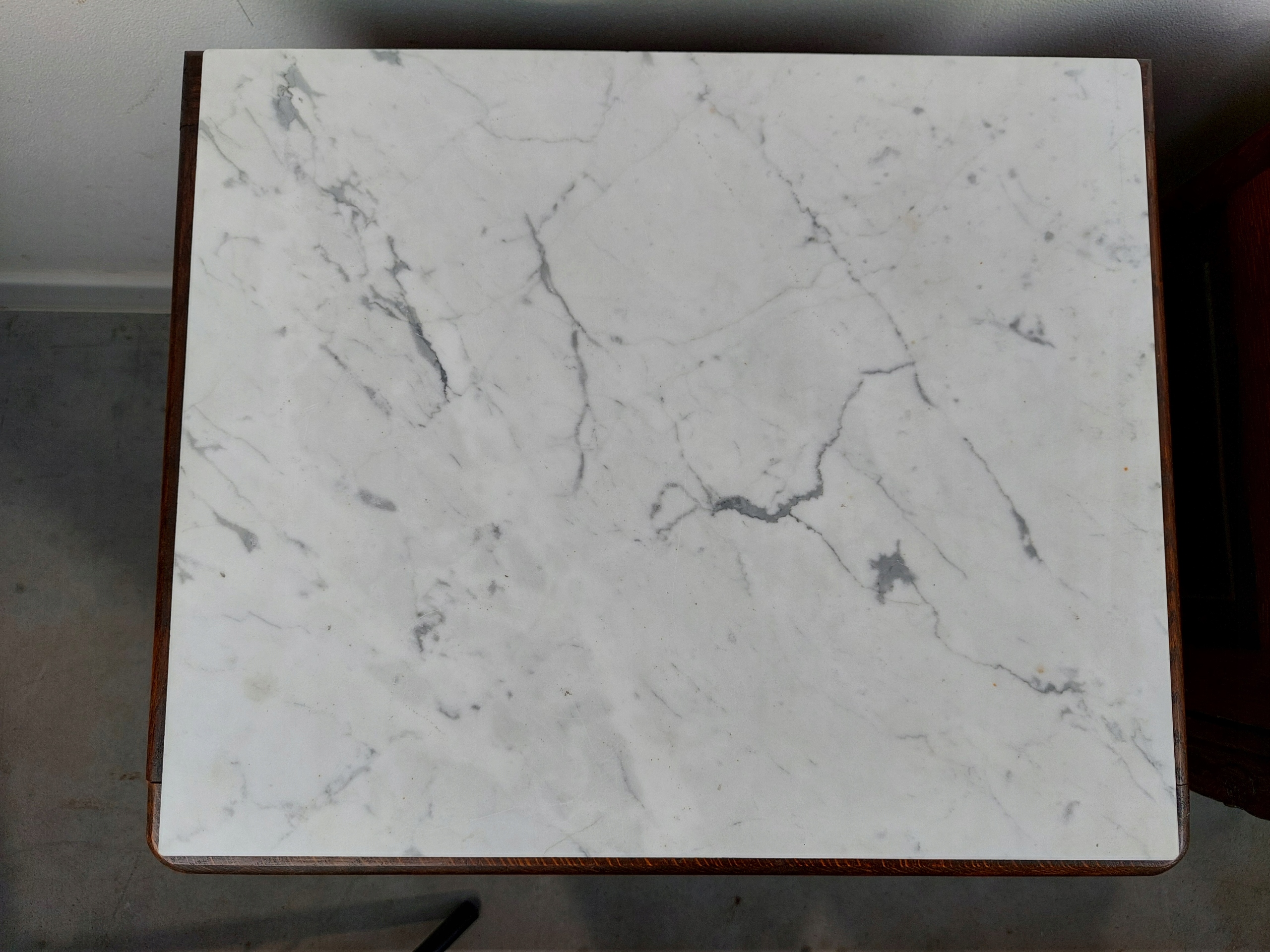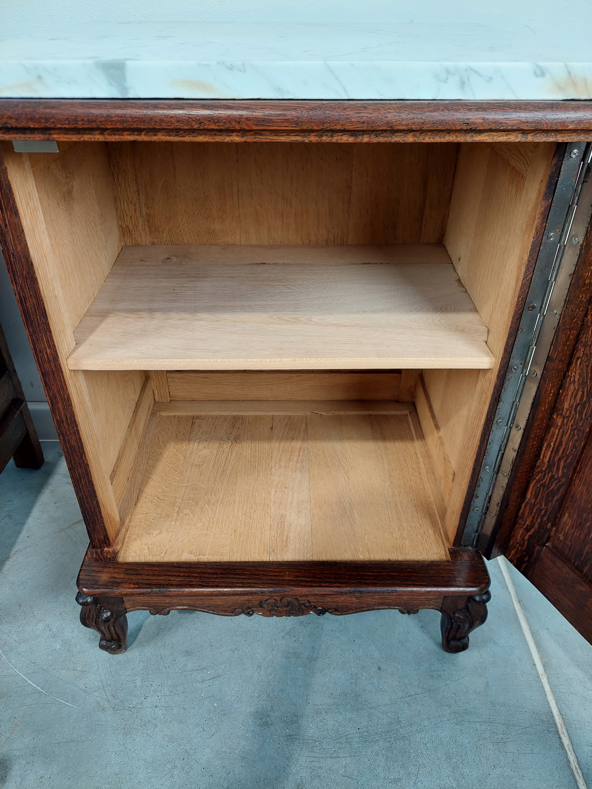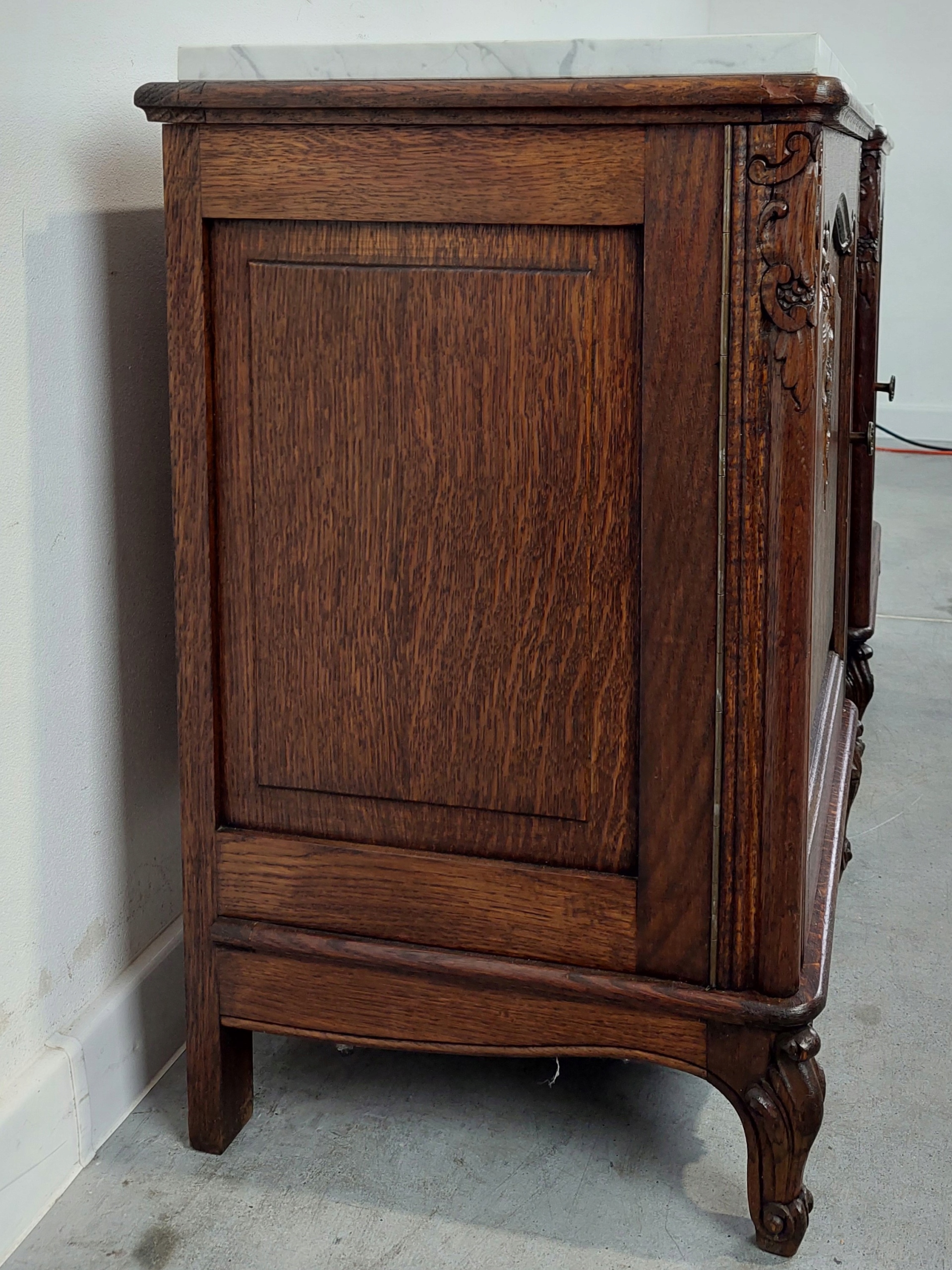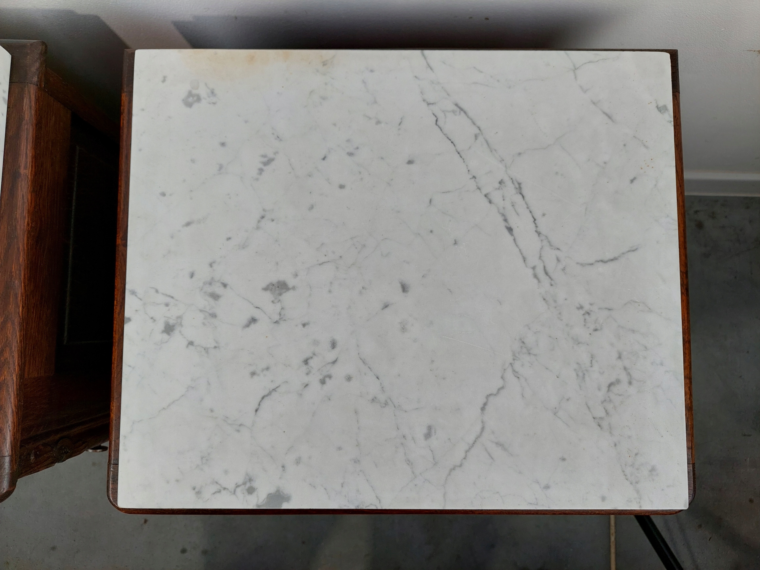 Стильні дубові тумбочки привезені з Франції. Унікальна модель в стилі рококо, масив меблів з дуба, багато різьблені фасади. Стаціонарно закріплена мармурова плита на стільницях. Меблі мають типові сліди використання та знаходяться у відмінному стані (враховуючи вік, дата створення близько 1920 року). Ціна вказана за комплект (2шт). Деталі описані та показані на фотографіях.
