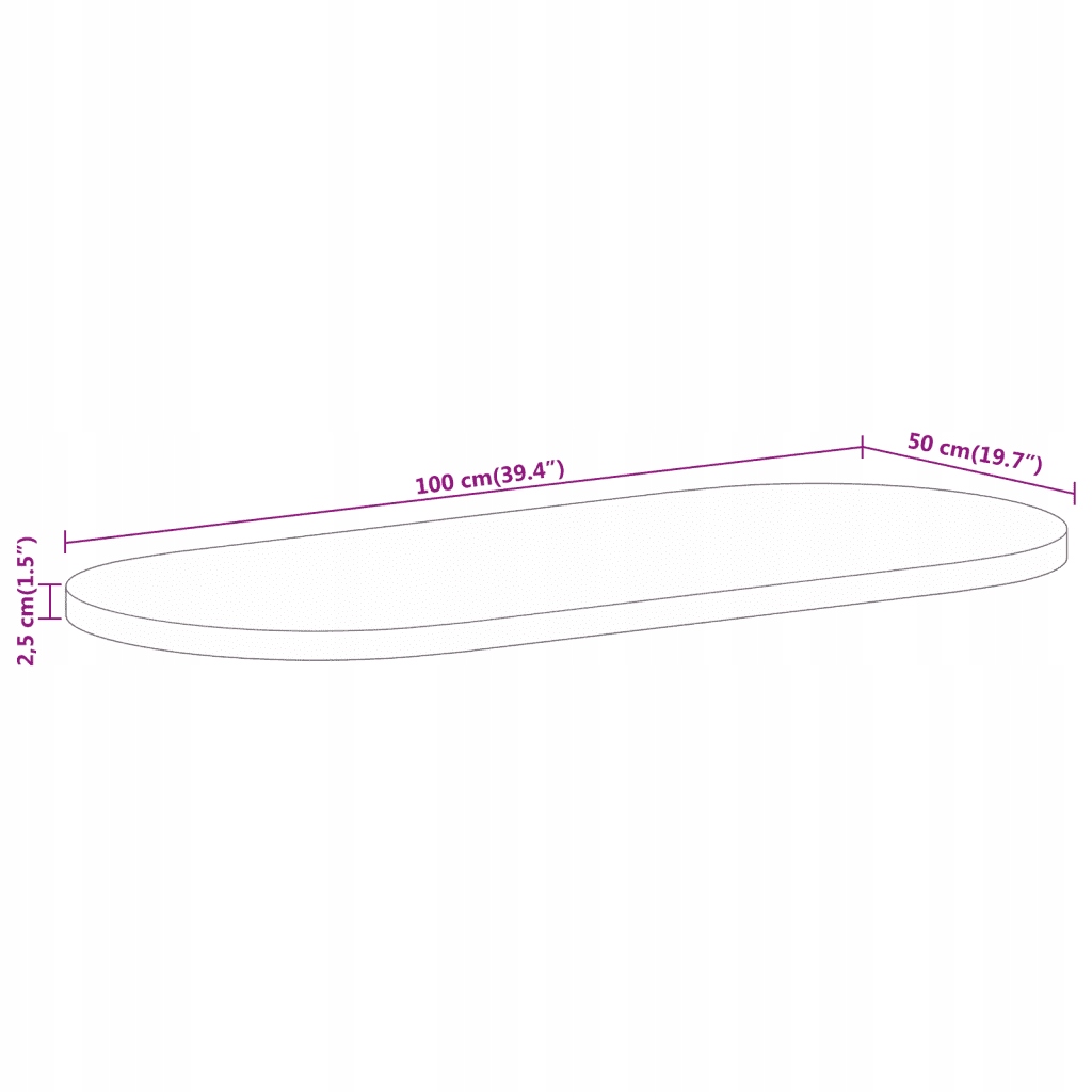 Стільниця, 100x50x2,5 см, овальна, необроблене мангове дерево