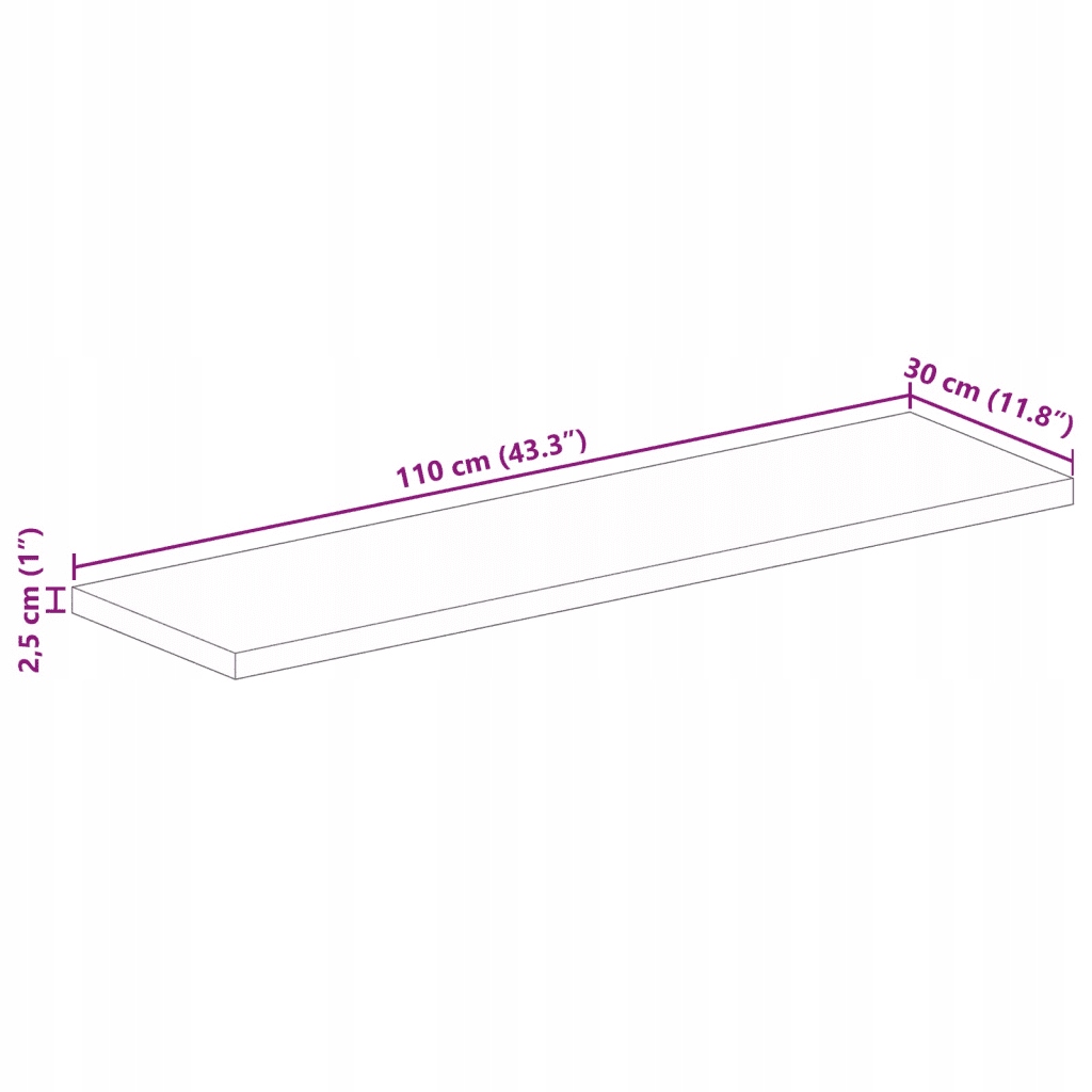 Стільниця, 110x30x2,5 см, прямокутна, тверда перероблена деревина