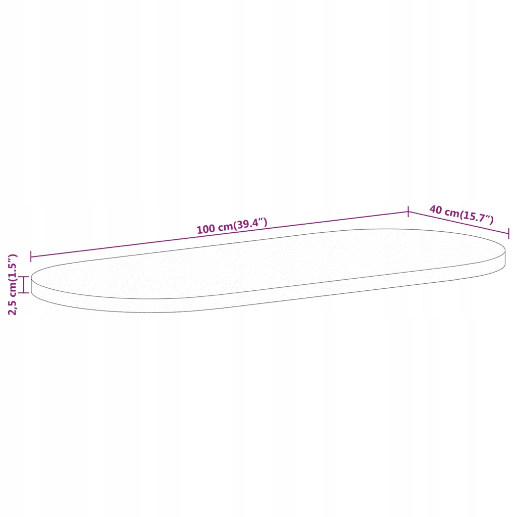 Стільниця 100х40х2,5 см, овальна, масив мангового дерева