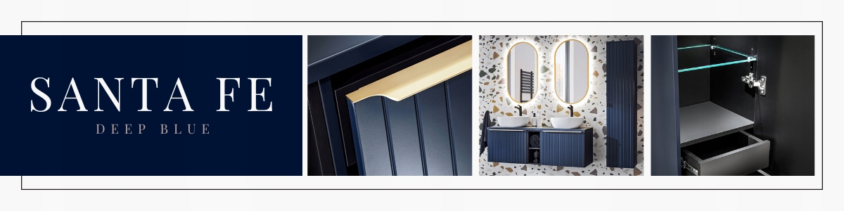SANTA FE DEEP BLUE - це смілива колекція, яку неможливо ігнорувати. Глибокий темно-синій у поєднанні з рифленими передніми частинами надає всьому цьому унікальний характер, завдяки якому зовнішній вигляд колекції відповідатиме навіть найвишуканішим візуальним потребам. Колекція доповнена золотими ручками, які ідеально відповідають сучасним трендам. Він неодмінно пожвавить будь-яку ванну кімнату і порадує своєю елегантністю. Розкішний дизайн і яскраві кольори - так можна описати Santa Fe Deep Blue. Унікальна естетика не поступається найвищій точності виготовлення та функціональності меблів для ванних кімнат цієї серії.
