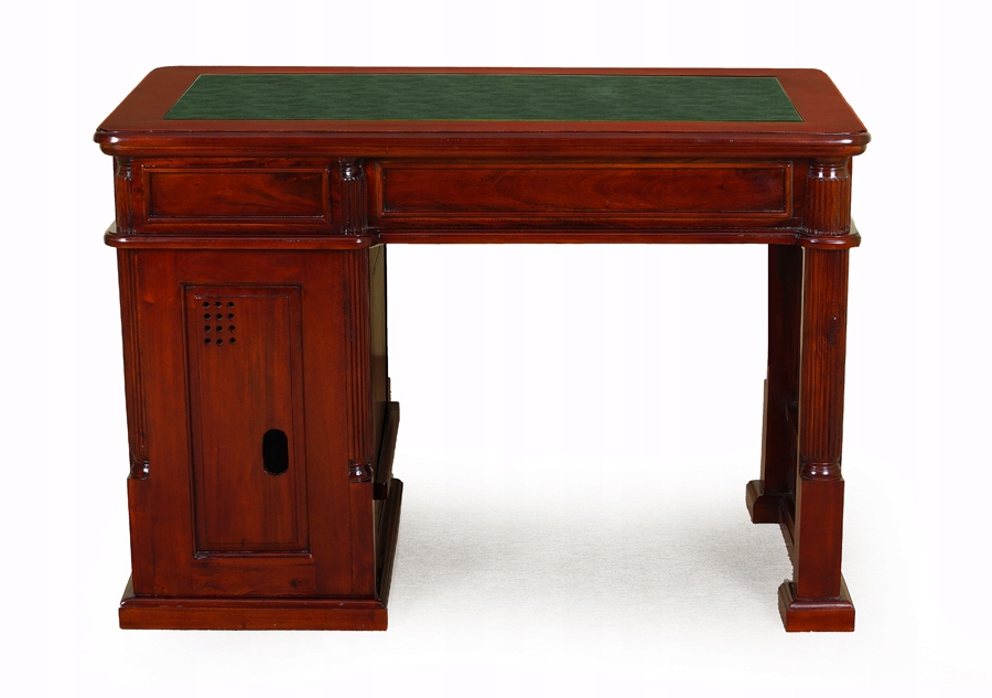 Предмет продажу - новий, стильний двосторонній письмовий стіл зі стільницею, обшитою зеленою екологічною шкірою.