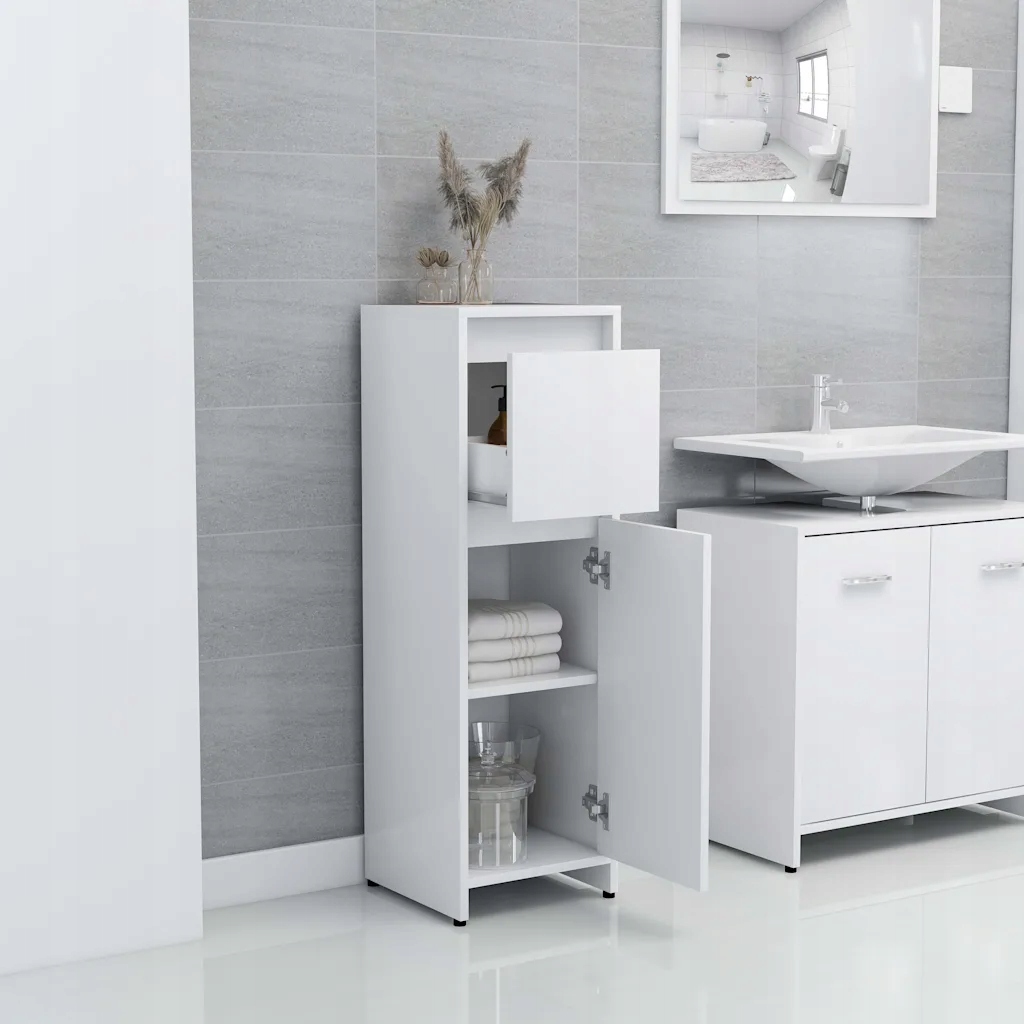 Стильний білий комплект меблів для ванної кімнати з дзеркалом 60x45 см, 30x30x95 см, 60x33x61 см