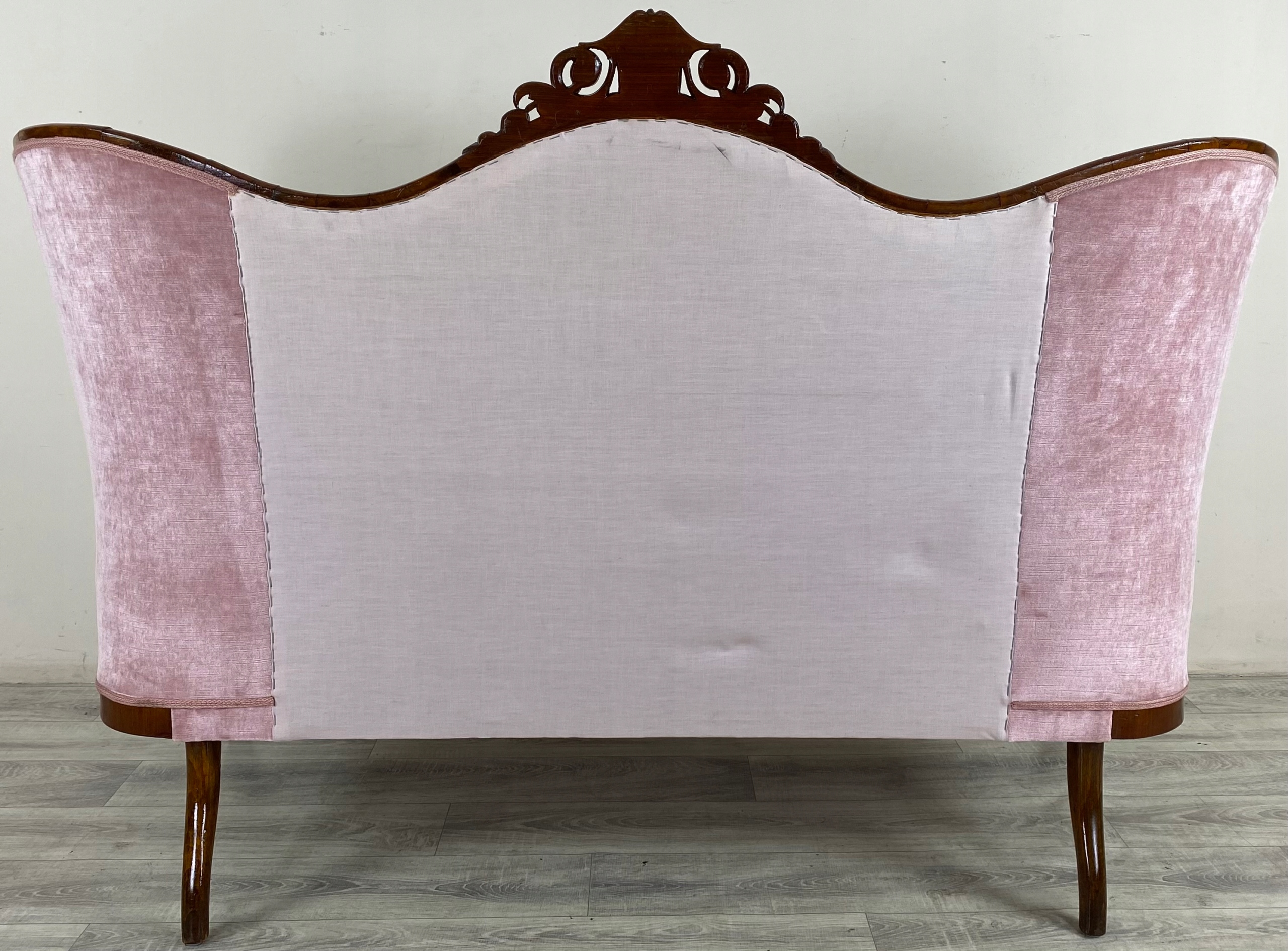 диван, покритий матеріальною оббивкою. Матеріал у дуже хорошому стані.