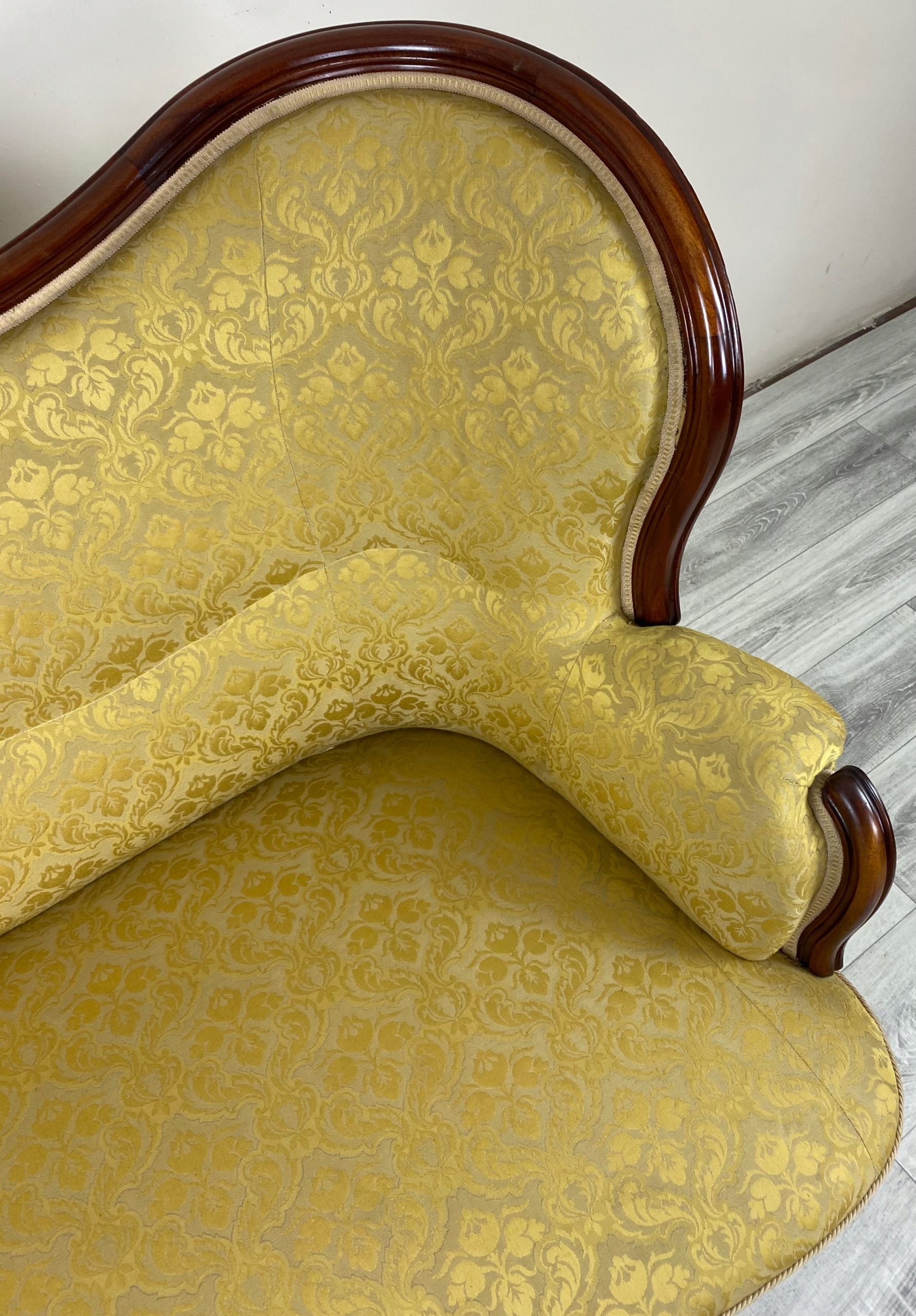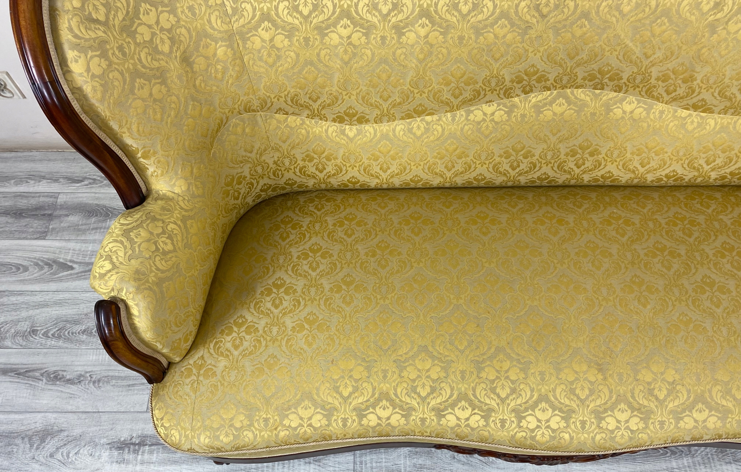 Насичена тканина золотисто-жовтого кольору з класичним дамаським рослинним орнаментом. Дуже якісний матеріал, який надає меблям розкішний характер.