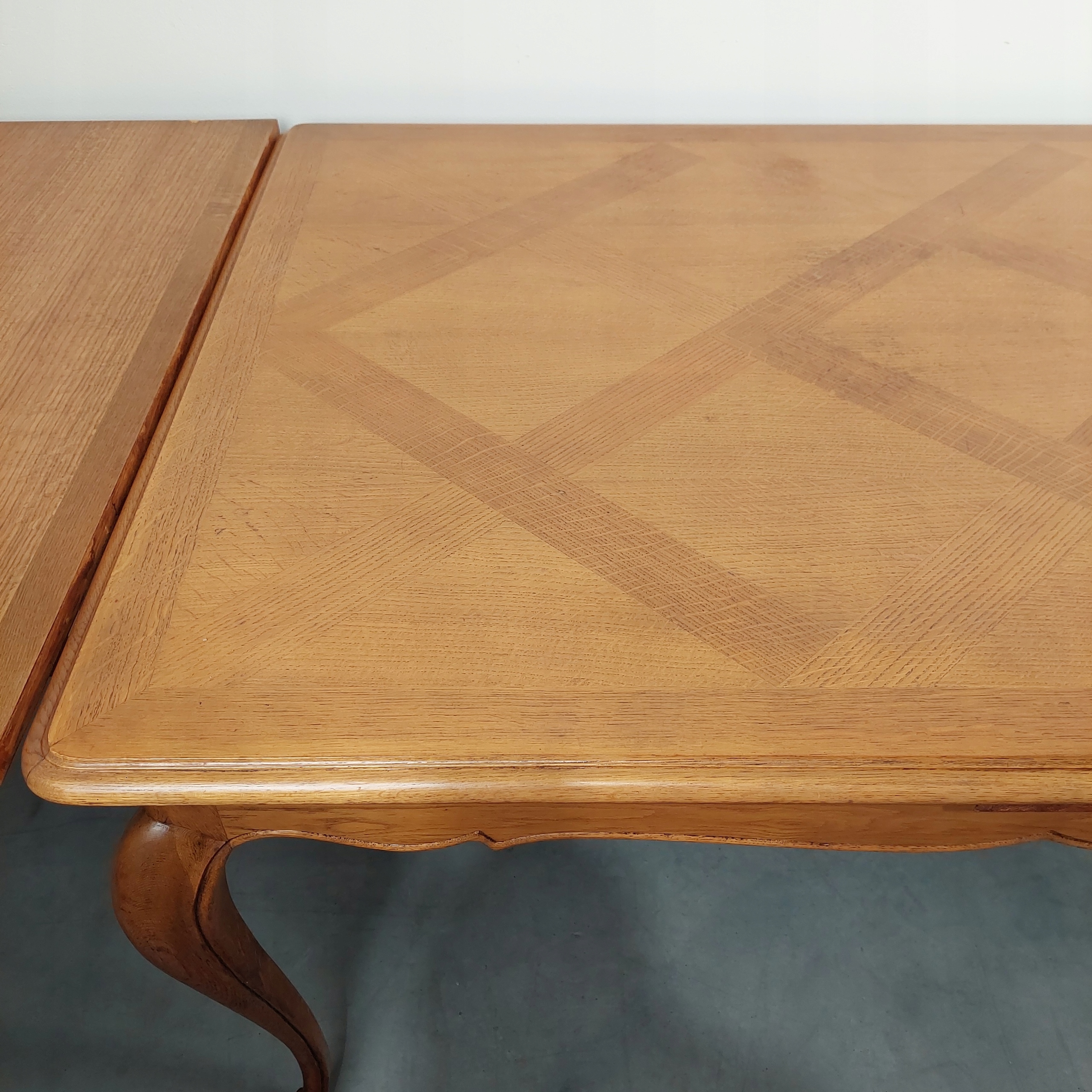 Стильний дубовий стіл Людвік, встановлений на гнутих ніжках. Для типового використання подряпин/знебарвлення та потертостей (без кромки шпону на подовжувачах). Стіл можна розкласти, стільниця залишається на місці, а подовжувачі висуваються з-під нього. Деталі на фотографіях нижче. Ціна вказана за стіл. (Ніжки для транспортування не відкручуються, стіл відправляється замовнику цілком).