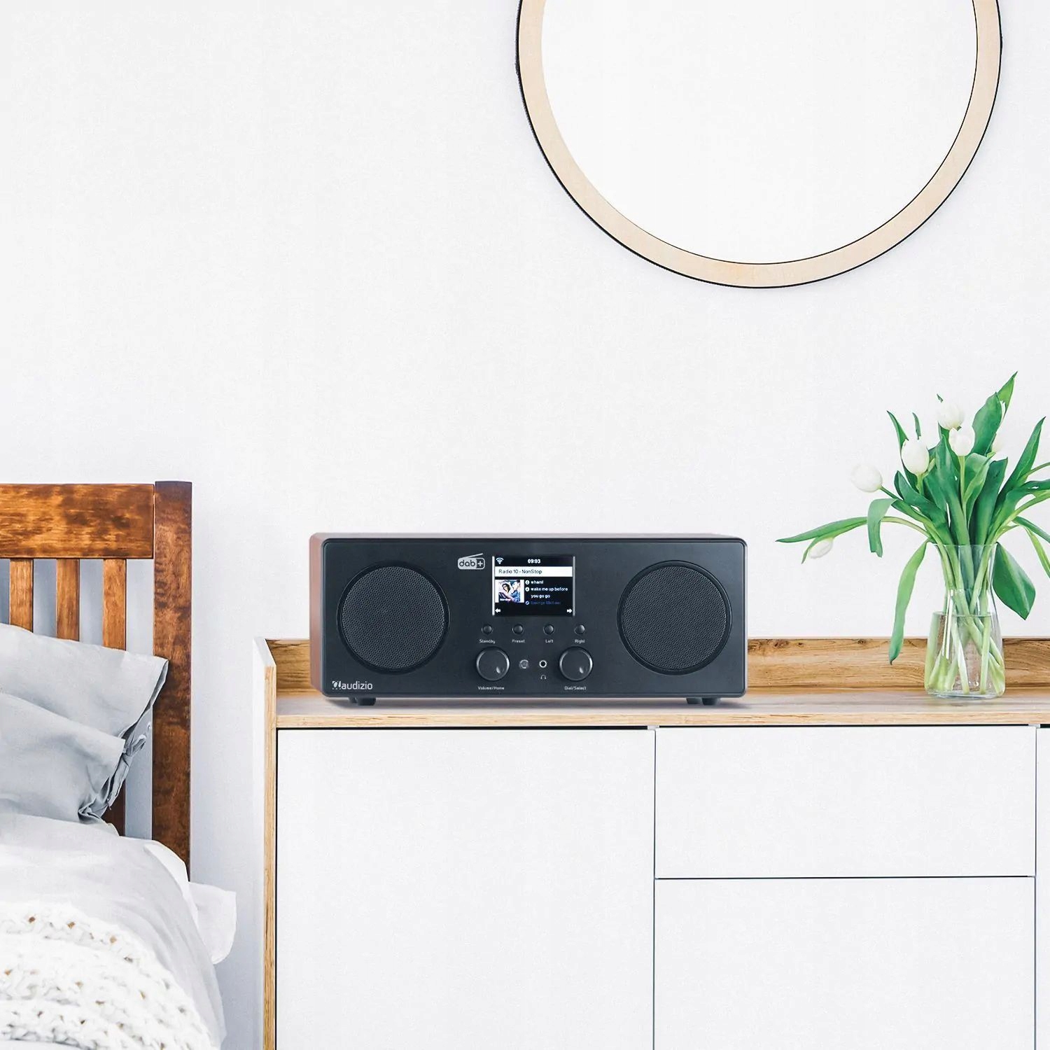 Audizio Rome — це універсальна музична система в компактному корпусі. Завдяки чудовим звуковим характеристикам і потужному звучанню окремі компоненти та великі динаміки залишилися в минулому, і ви можете насолоджуватися улюбленою музикою чи радіостанцією будь-де у своєму домі чи офісі.