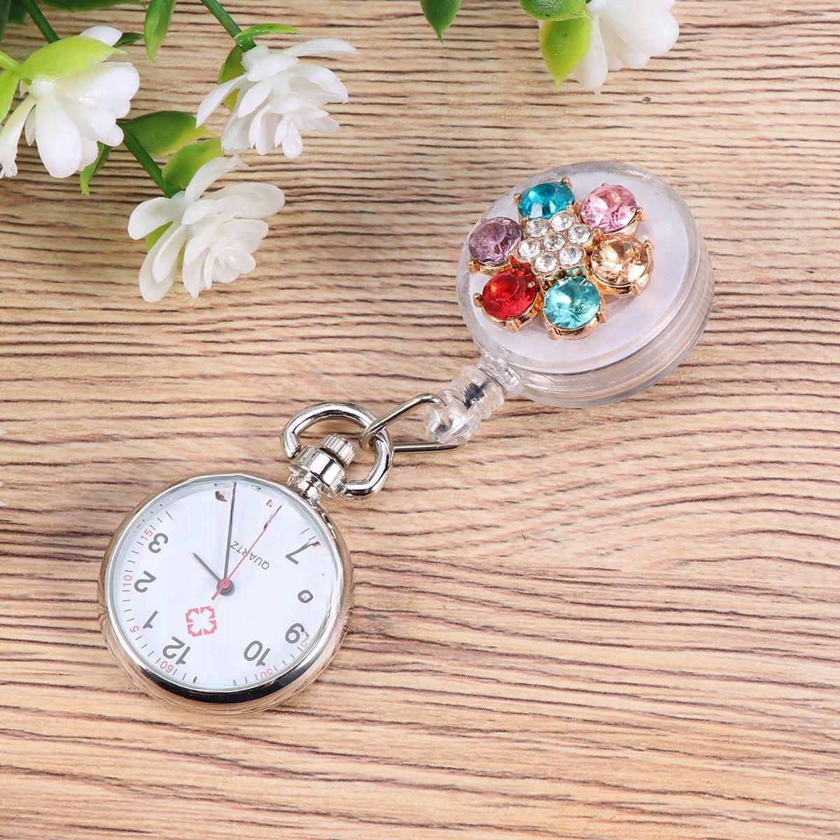 Стильний кишеньковий годинник медсестри з квітковим декором та стразами, 1 шт.