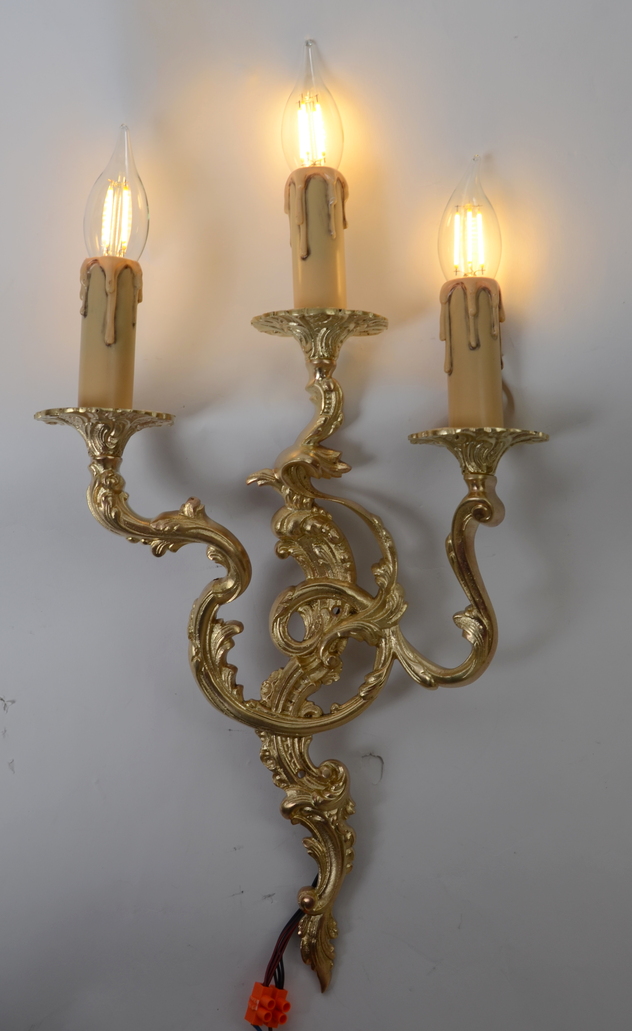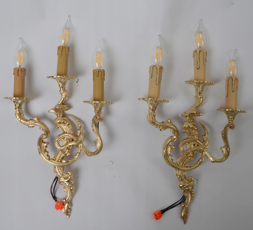 Предметом аукціону є неймовірно оригінальний набір із 2 настінних ламп-свічок з Іспанії 1950-х років. Набір виготовлений з латуні золотого кольору. Місце кріплення настінного світильника до стіни має неймовірно оригінальну форму. Розташовані по центру рамені виходять з центру, а підсвічники є їх безсумнівною перевагою. Неймовірна точність виконання, увага до кожної деталі, простота і незвичайність форми роблять набір справжнім унікальним.