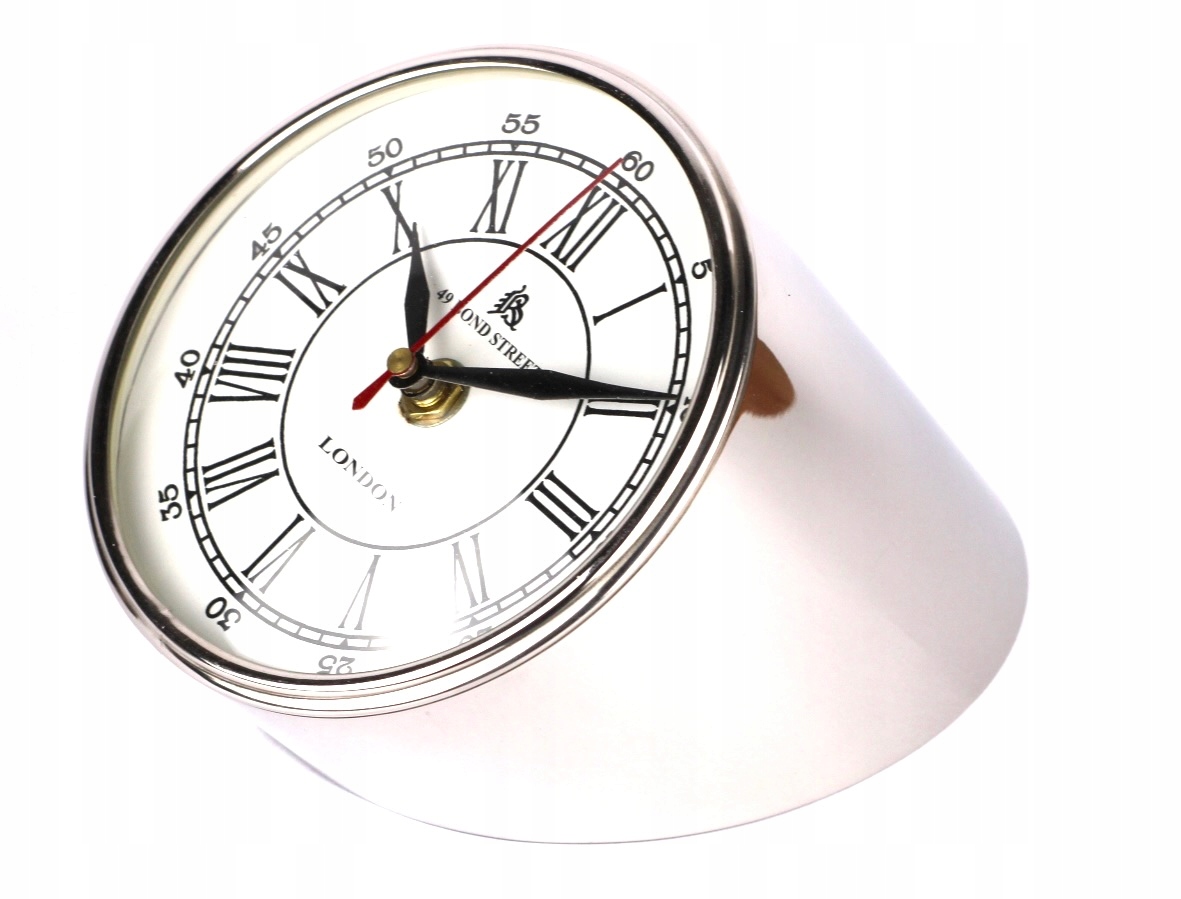 Металевий настільний годинник CLK-0212 виглядає так, ніби його вийняли з кабіни старого літака. Годинник у нетрадиційній формі усіченого циліндра - корисна та оригінальна прикраса столу. Він також працюватиме як годинник для спальні, який можна розмістити на тумбочці. Білий циферблат із чорними римськими та арабськими цифрами забезпечує відмінний контраст і дозволяє легко читати час. Римські цифри позначають години, арабські цифри - хвилини. Ціле зберігається в чистому та охайному естетиці, що вписується в сучасний інтер’єр.