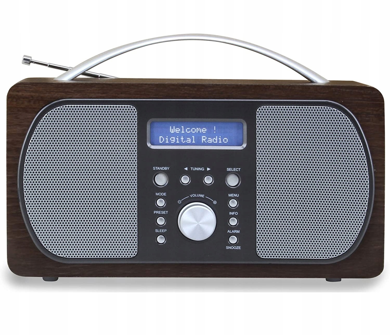 Стильний портативний FM-радіо, DAB+, дерев'яний корпус, коричневий