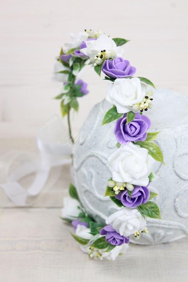 Стильний причастя вінок ФІОЛЕТОВІ троянди і причастя