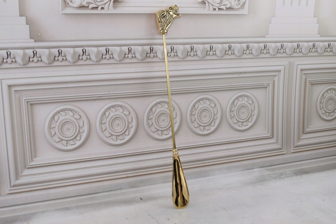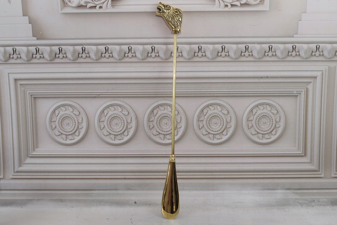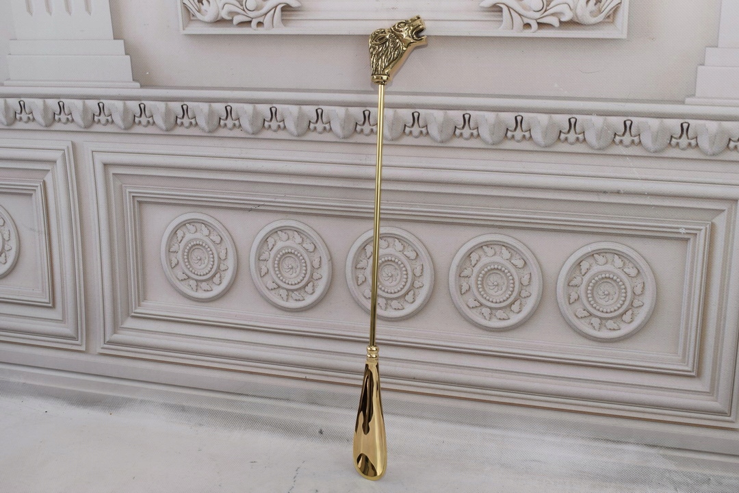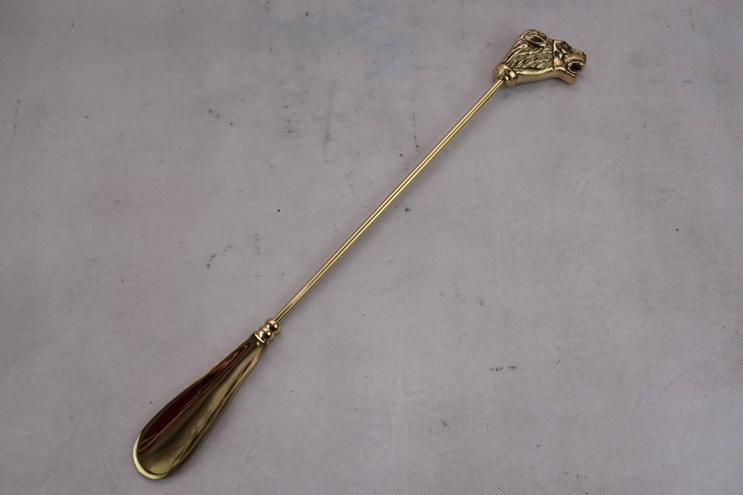 Стильний ріжок для взуття - Левова голова - латунь - золото 48 см