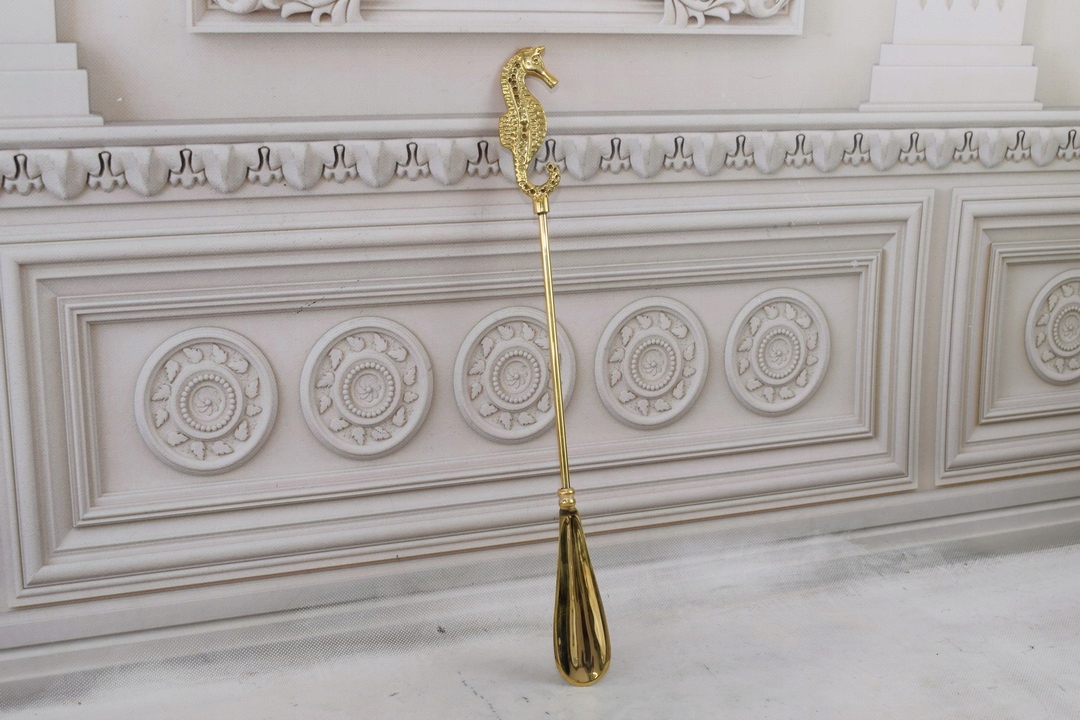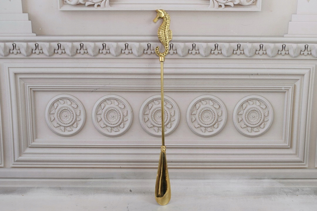 Стильний ріжок для взуття - Морський коник - Латунь - Золото 46 см