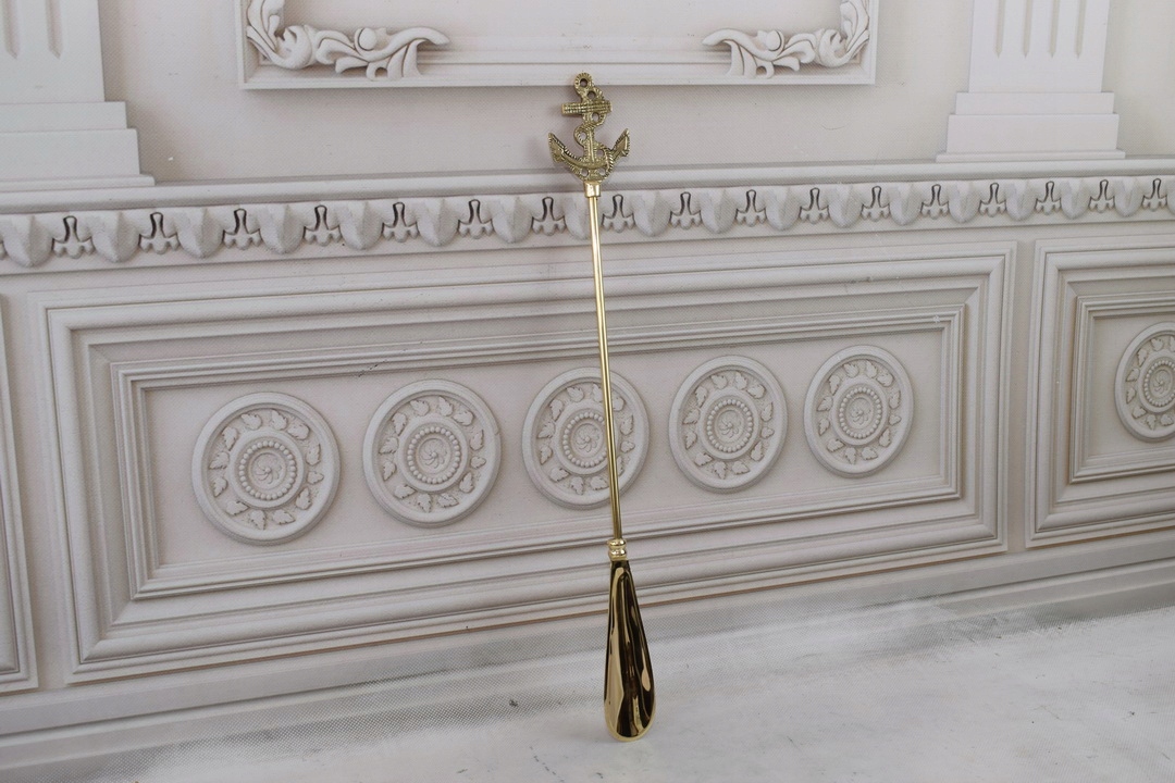 Стильний ріжок для взуття - морський якір - латунь - золото 48 см