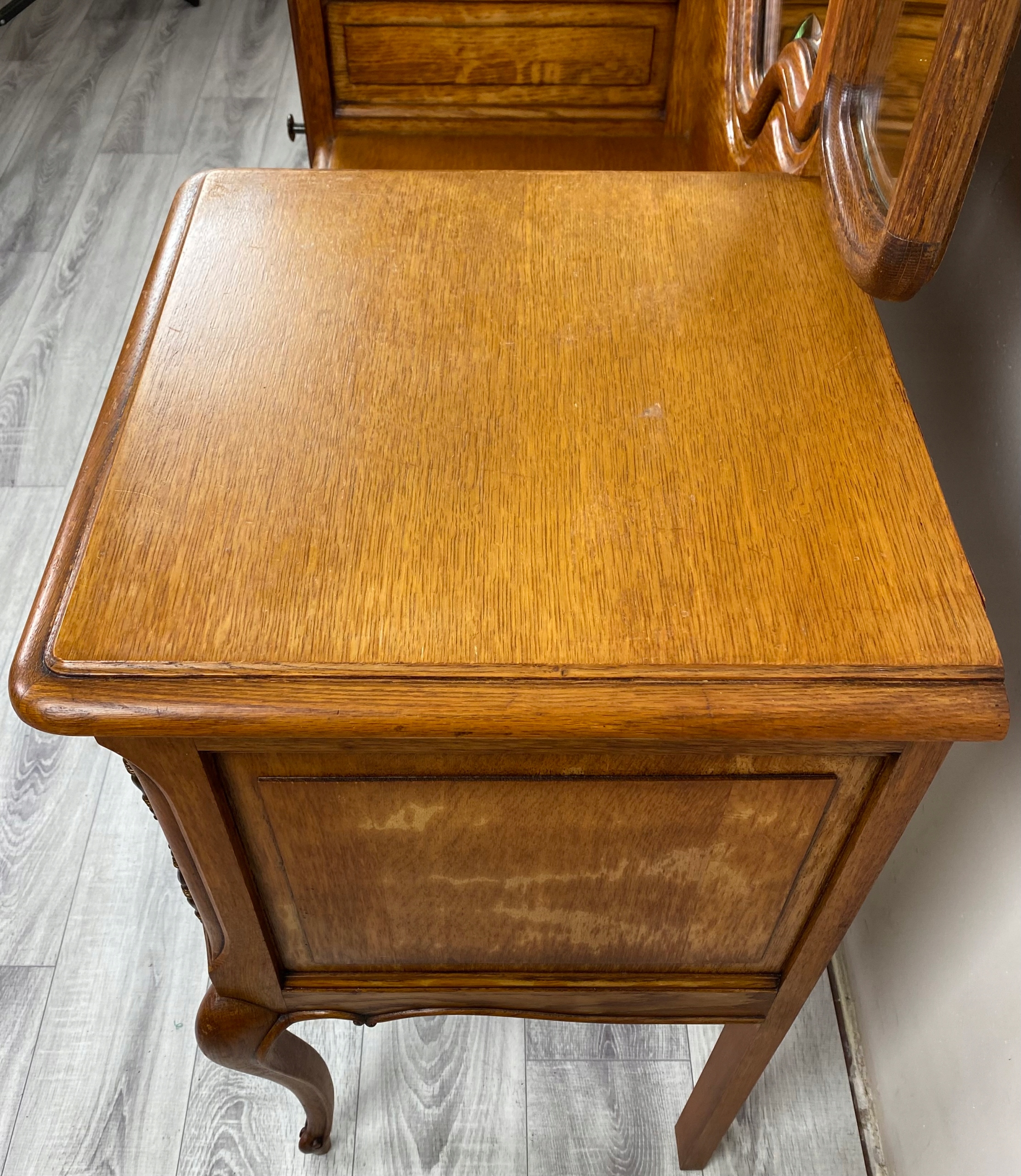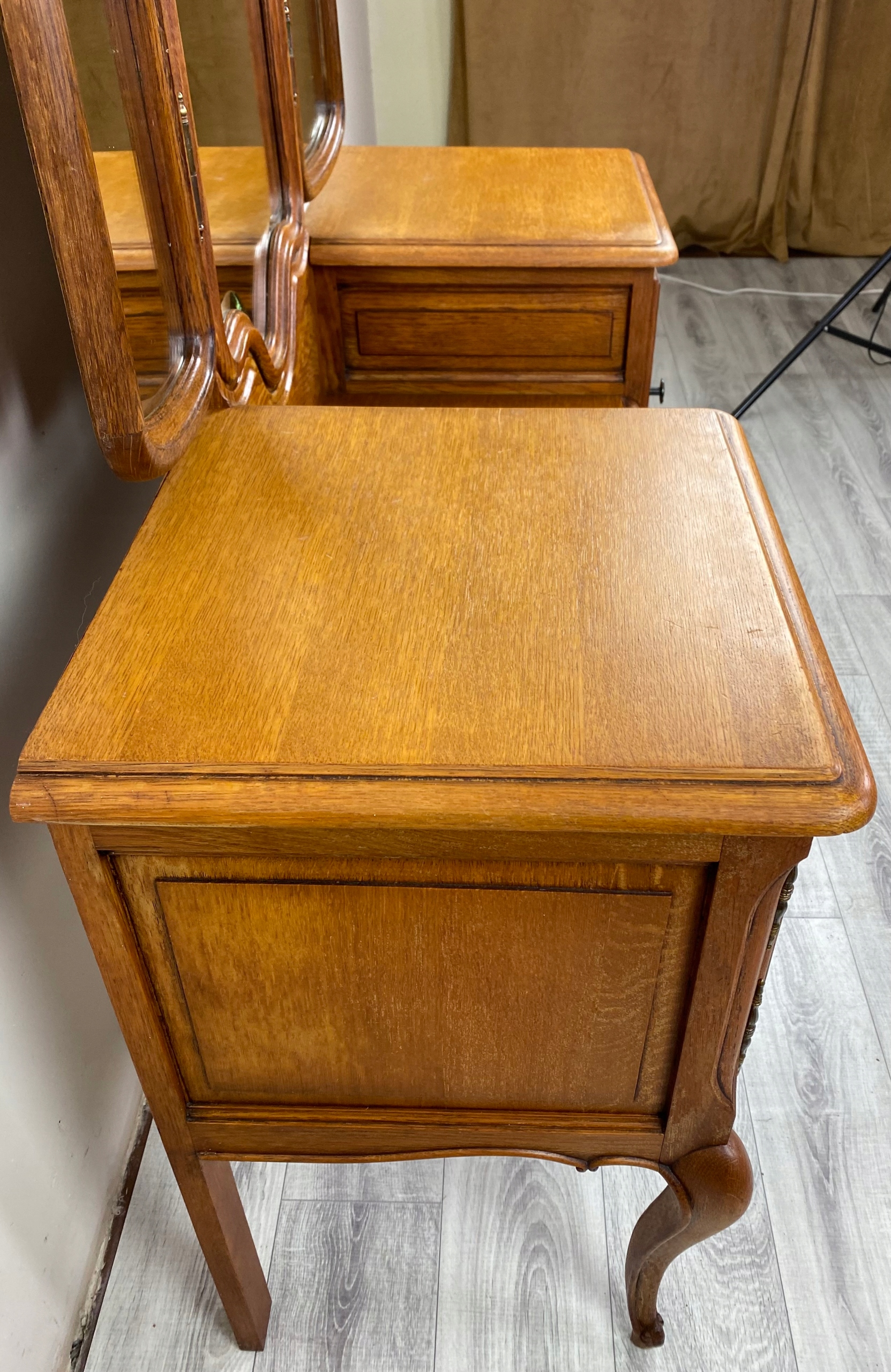 Верхня частина туалетного столика - дзеркало, що відкривається та закривається. Дзеркало в дуже хорошому стані.