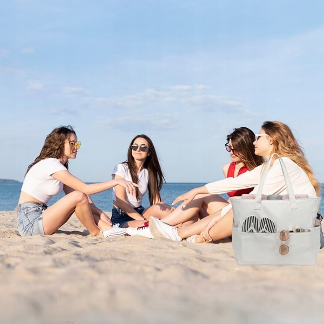 ↗ Велика пляжна сумка з кишенями - ваш надійний супутник відпочинку!