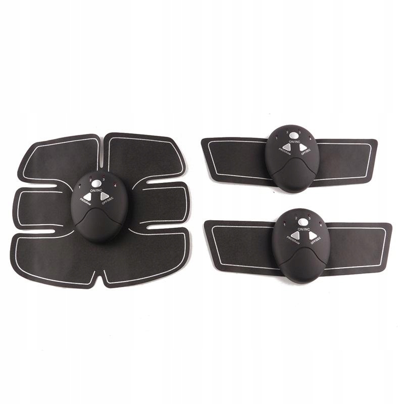 Упаковка містить три самостійні шпильки, один на шлунку та два на плечах / ніг, підібраних бездротових контролерів, прикріплених до педію. Блок управління працює від двох акумуляторів AAA та MO. Регулююча інтенсивність, так що оптимізація електричних імпульсів відповідно до потреб індивіду. 4 EMS (електрична стимуляція Mi [ni)