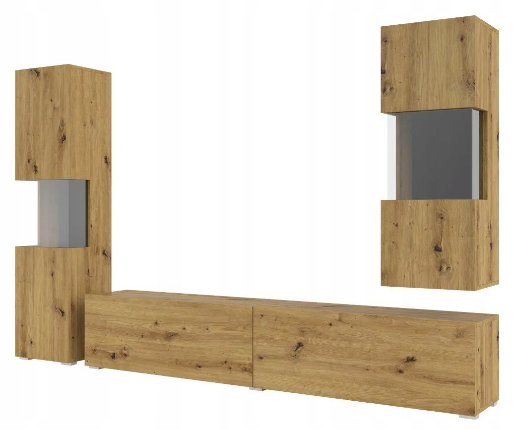 AVA — це колекція мінімалістичних і елегантних меблів для вітальні. Завдяки конструкції без ручок, меблі відрізняються високою функціональністю і комфортом використання. Колекція представлена в трьох колірних варіантах: чорний + дуб Вотан, дуб ремісничий + чорний і білий + дуб Вотан. Проста форма – квінтесенція актуальних трендів. Безсумнівною перевагою також є можливість установки в стоячому або підвісному варіанті - в комплект входить металева фурнітура, завдяки якій ми можемо заощадити простір в маленькій кімнаті. Для виготовлення меблів використовувався міцний меблевий щит.
