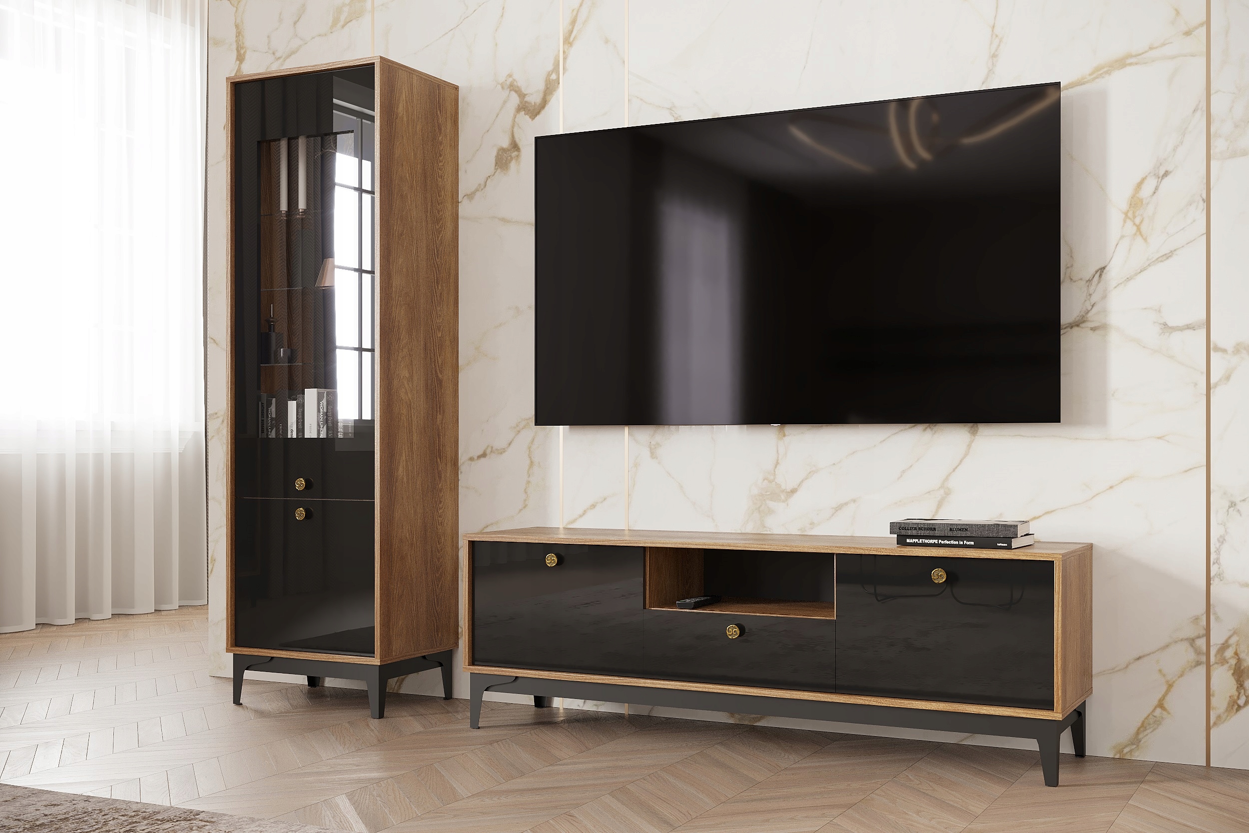 СТІНКА КОМПЛЕКТ МЕБЛІВ ВІТРИНА КОМОД ТЕЛЕВІЗОР ЧОРНА ГЛЯНЦЕВА ЛАТУНЬ