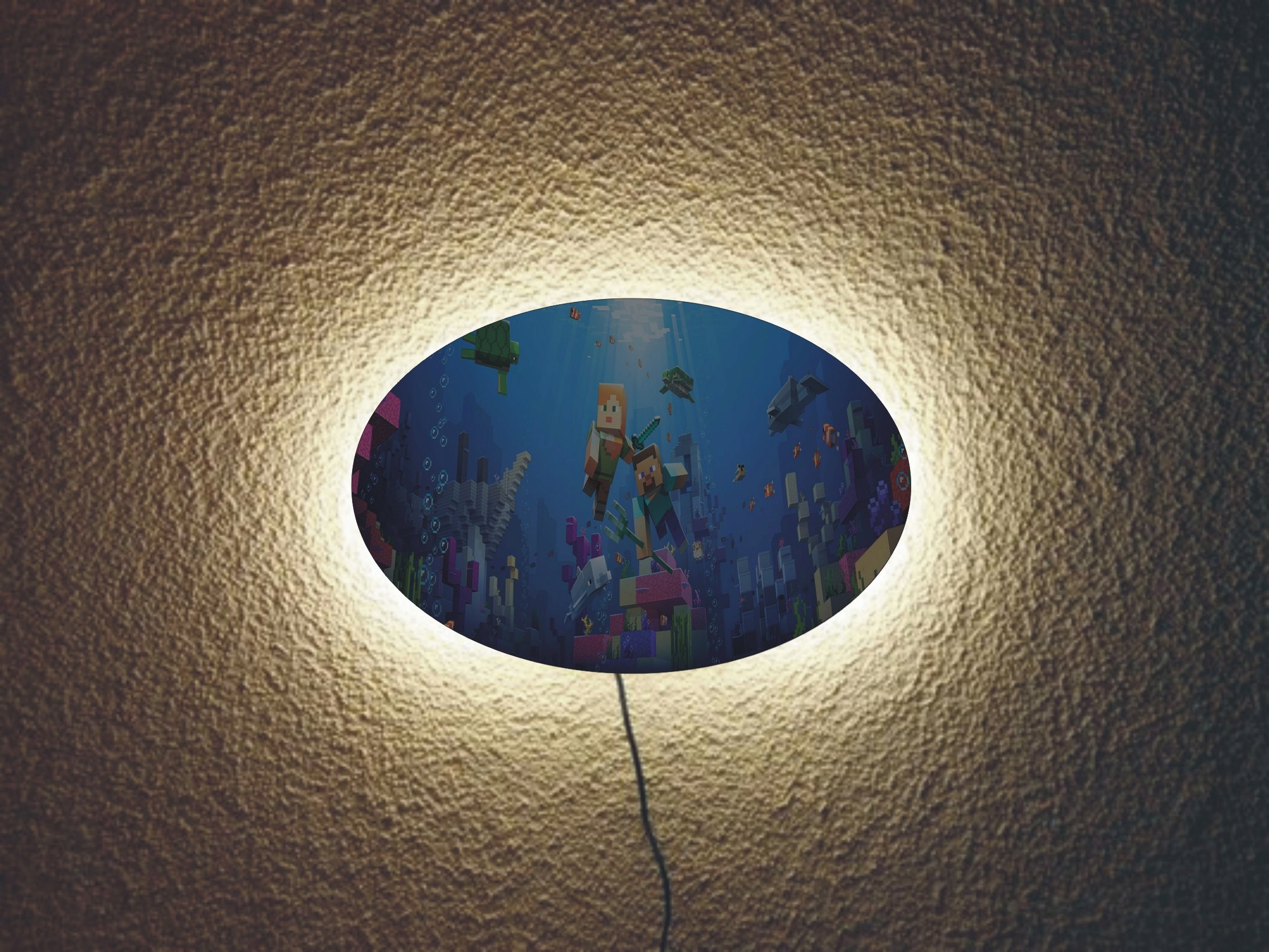 - night lamp in the shape of an ellipse with dimensions 30cm/20cm, total thickness about 3.5cm