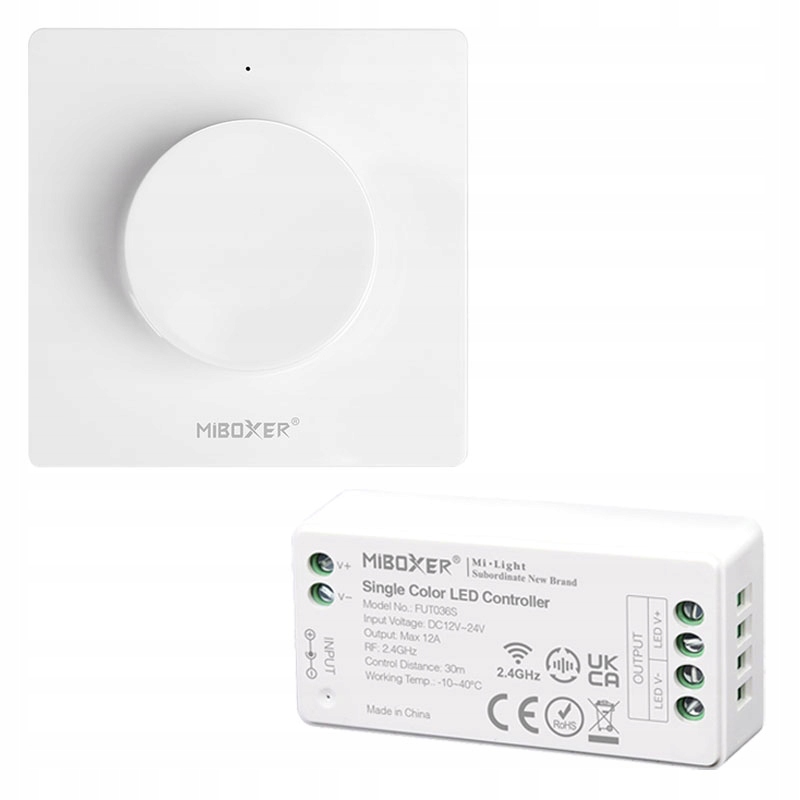Модель FUT036S - остання версія зонного диммера MiLight для одноколірних світлодіодних стрічок з напругою 12В-24В. Зменшені розміри, збільшена потужність і можливість змінювати частоту ШІМ-модуляції роблять його неперевершеним і безвідмовним рішенням такого типу на ринку.