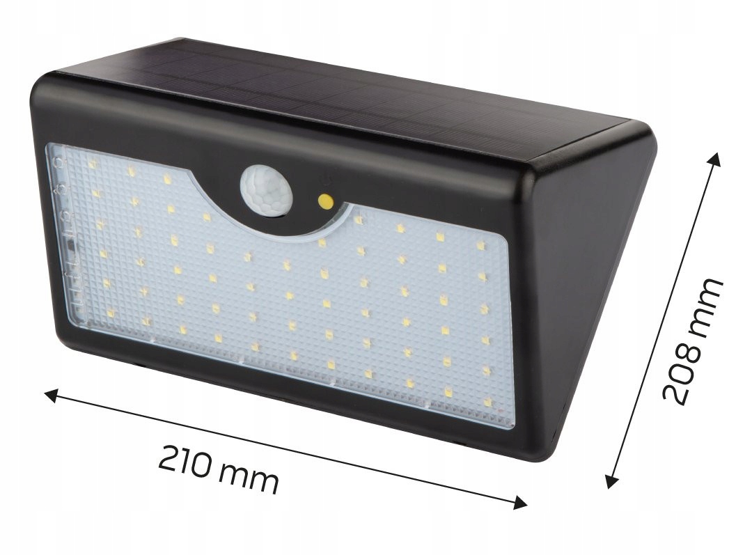 Сонячна стінова лампа, пропонована в наборі з практичним пультом дистанційного керування для швидких налаштувань. Пристрій складається, серед інших з панелі для збору сонячної енергії з великими світлодіодними лампами та SMD, пропонуючи сучасні рішення, високу міцність зовнішнім факторам та чистому, інтенсивному світлу.