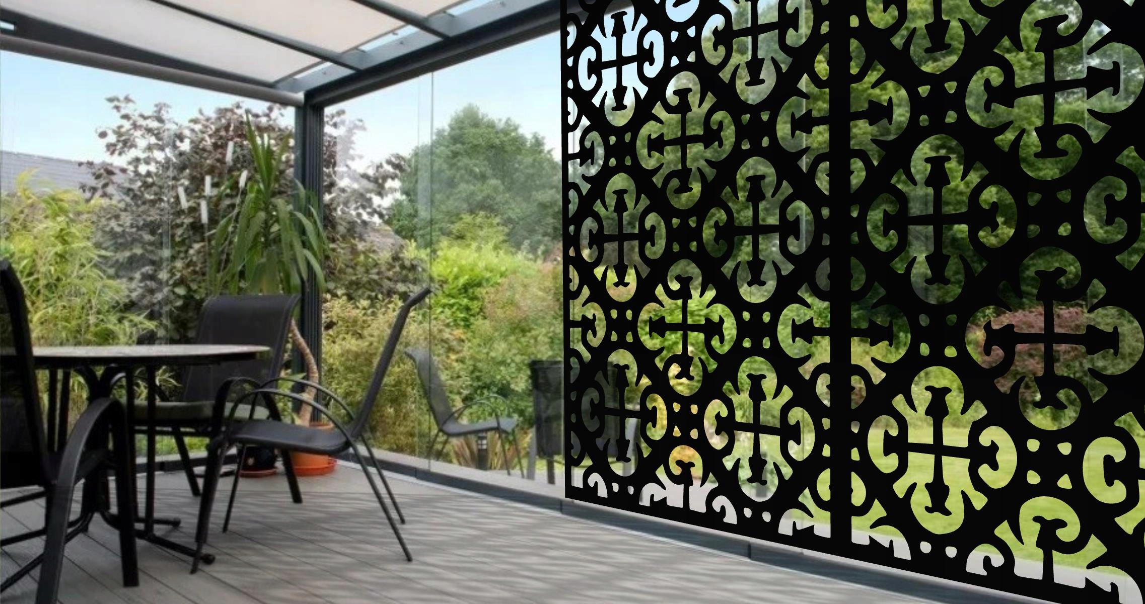 Вся конструкція панелі може бути розроблена таким чином, щоб візерунок на наступній панелі - це продовження попереднього шаблону. Панелі прості в установці можуть використовуватися як проміжок паркану, ворота, ворота, балюстрада, покриття стелі, декоративні стіни інтер'єру та альт, садові дахи, садові дахи, перголи та терасові будівлі. У кожному елементі ми можемо вирізати готові отвори для заклепок або кріпильних ручок відповідно до потреби замовника.