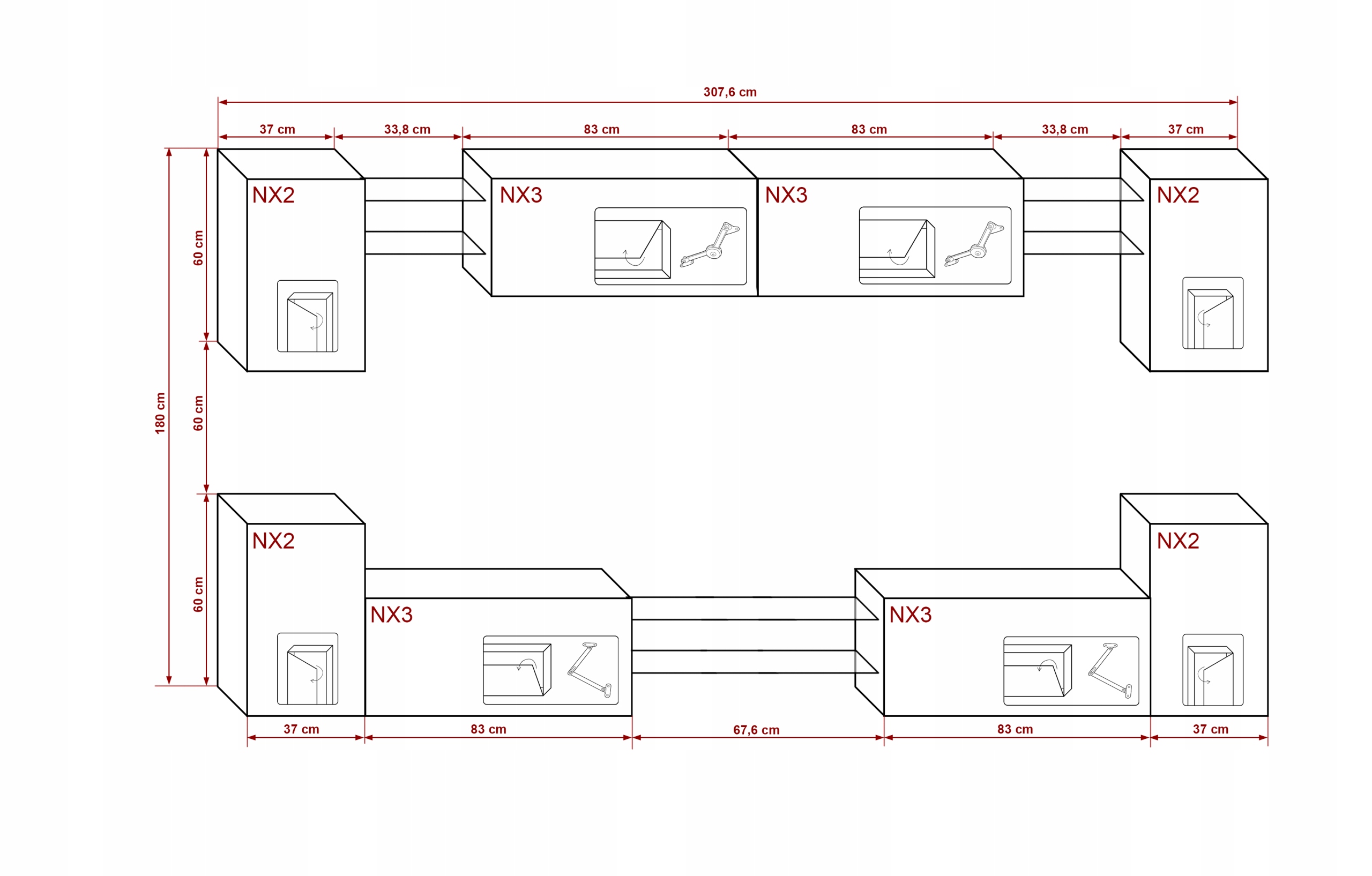 - Стінка розроблена з урахуванням індивідуальних побажань замовника, тому є можливість змінювати загальну ширину та висоту меблів (модульна стінка)