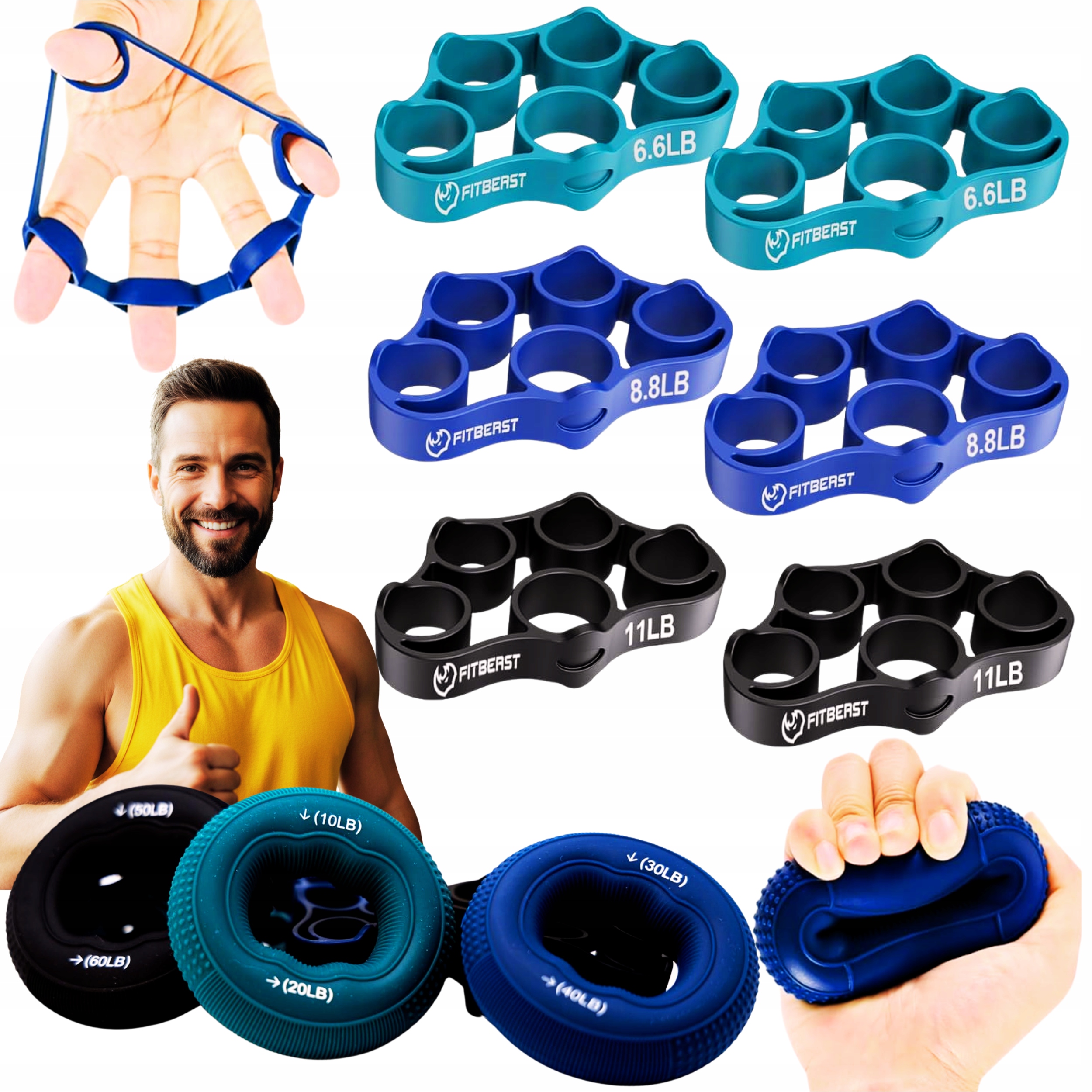 Набір підтримує вправи після травм зап'ястя і пальців, а також для профілактики перевантажень. Градуювання опору дозволяє відновити фізичну форму без різких змін навантаження.