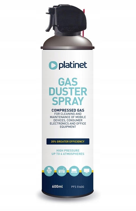 Стиснене повітря для чищення електронних пристроїв Platinet видаляє пил із важкодоступних місць, де не можна використовувати вологе прибирання. Рекомендовано для чищення: касових апаратів, комп'ютерів (чистка клавіатури, внутрішніх частин корпусу комп'ютера), оргтехніки, копіювальної техніки, принтерів, фототехніки, приладів точної механіки та телекомунікаційних пристроїв. Пил та інші забруднення видуваються під високим тиском, не залишаючи слідів очищення. Стиснене повітря Paltinet дуже легко використовувати, а завдяки приєднаній капілярній трубці можна точно направити сильний газовий потік на забруднене місце.
