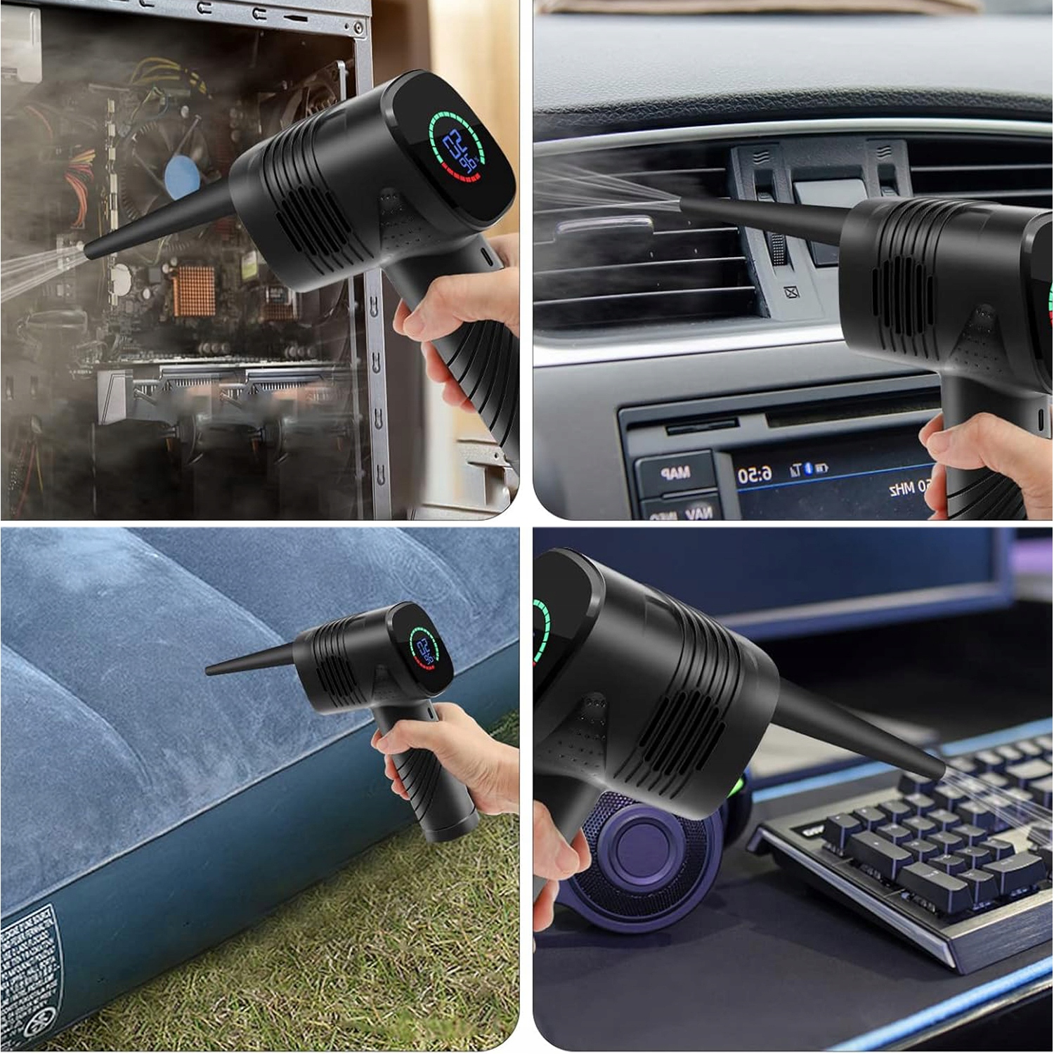 🌀 【Безщітковий двигун наступного покоління】: розроблений із покращеним безщітковим двигуном, стисненим повітрям пилосос створений, щоб служити протягом тривалого часу. Безщітковий двигун працює холодніше та має вдвічі довший термін служби, ніж подібні щіткові інструменти, водночас забезпечуючи більшу силу обдування з меншим рівнем шуму. Легко видаліть пил і сміття, яке накопичується навколо клавіатур, комп’ютерів, електронних пристроїв, автомобільних компонентів, ігрових консолей тощо.