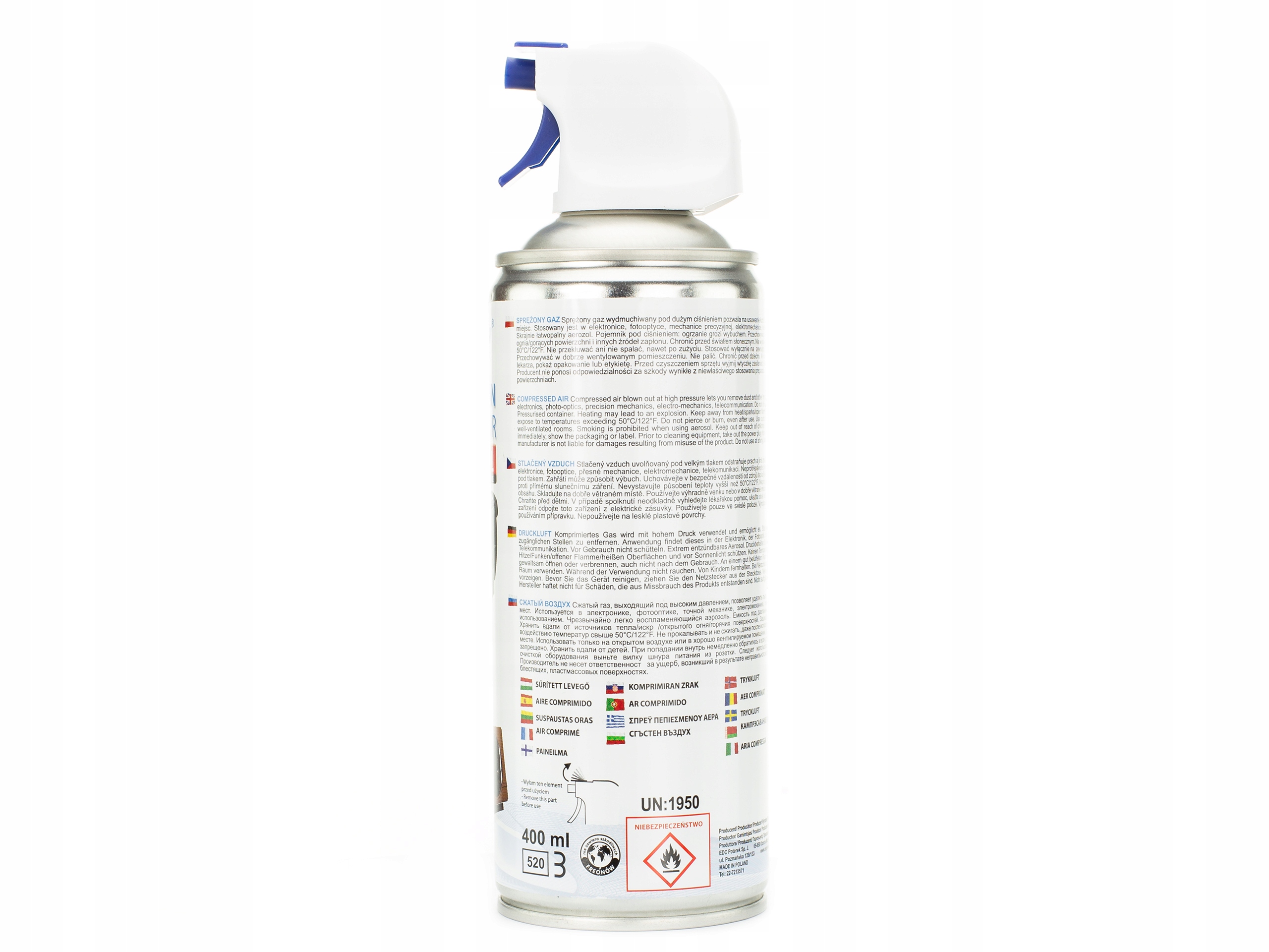 Стиснений газ ідеально очищає та видаляє пил із важкодоступних місць в офісній техніці, такій як: ноутбуки, клавіатури, комп'ютерні корпуси, принтери, факси тощо. Він видуває пил та інші забруднення з важкодоступних місць.