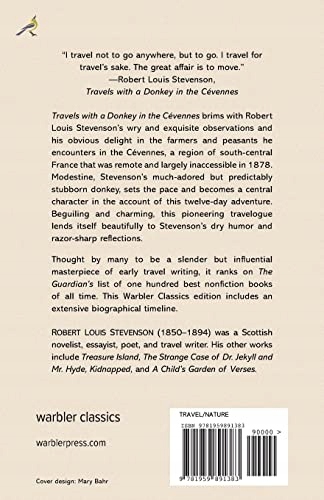 "Писання подорожей Стівенсона, невелика частина його нехудожньої літератури, настільки ж видатна і впливова, як і його фата". —The Guardian Travels with a Donkey in the Cévennes Brims with Robert Louis Stevenson’s Wry and Exquisite Observations and His Obvious Delight in the Farmers and Peasants he encounters in the cévennes, and the region of south-central france that was remote and lar 1878. Modestine, Stevenson’s Much-Adored But PredictBly Stubborn Donkey, Sets the Pace and Becomes a Central Character in the Account З цієї дванадцятиденної пригоди. Про жебрацькі та чарівні, ця піонерська мандрівка піддається красі сухим гумором Стівенсона та роздумами про бритву. Думаючи, що багато хто є струнким впливом шедевра раннього написання подорожей, він займає список опікуна із ста найкращих книг нехудожньої літератури всіх часів. Це видання Classics Classics включає широку біографічну шкалу.