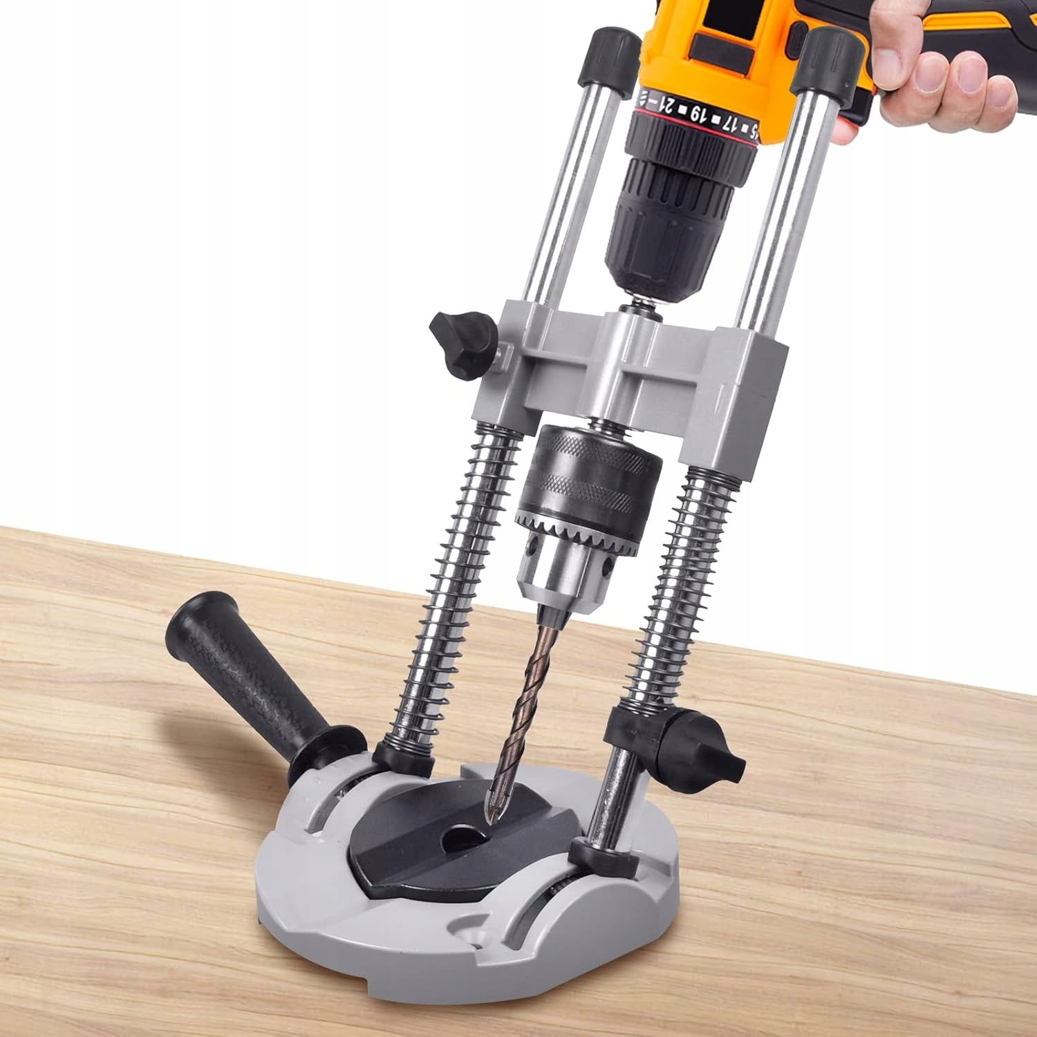 ⭐Високоякісні матеріали:Стійка для дриля виготовлена із зносостійкого алюмінію та сталі. Завдяки використанню цих матеріалів виріб характеризується високою міцністю, ударостійкістю та тривалим використанням.