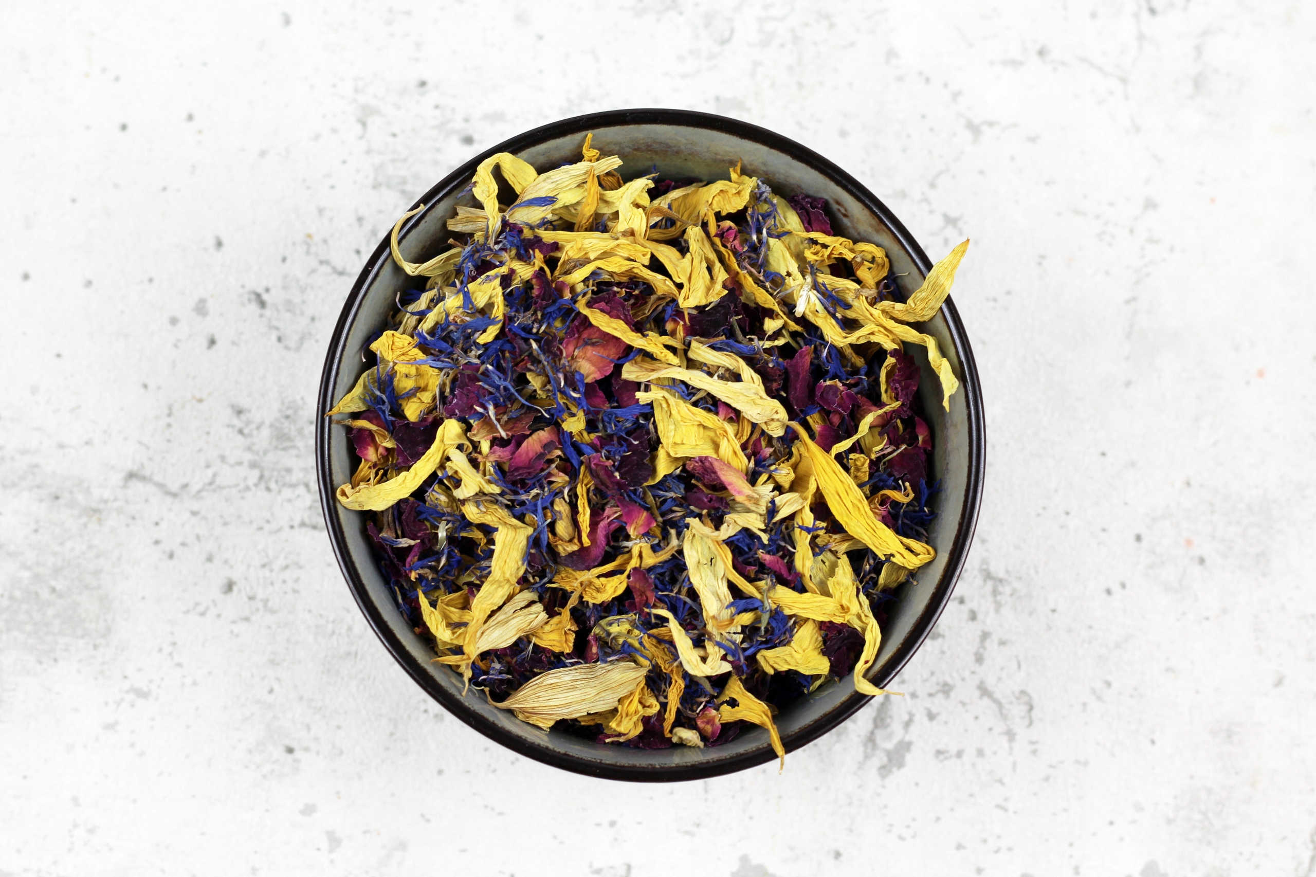 Інгредієнти: пелюстки соняшника, пелюстки волошки, пелюстки троянди