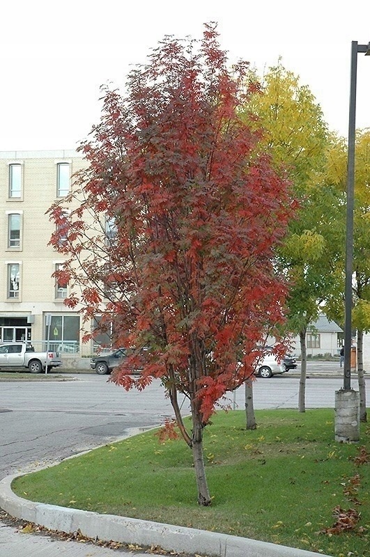 Ранньою весною вона дає складні, пір’ясті світло-зелені листки.У травні листя стає темно-зеленим і квіти дерева білим. У серпні стає двоколірним: червоні плоди контрастують із зеленим листям. У жовтні контраст зникає - листя стає червоним. З часом дерево втрачає листя, а плоди залишаються на дереві до січня. Червоні плоди додають чарівності зимовим пейзажам, але з часом їх з’їдають птахи.