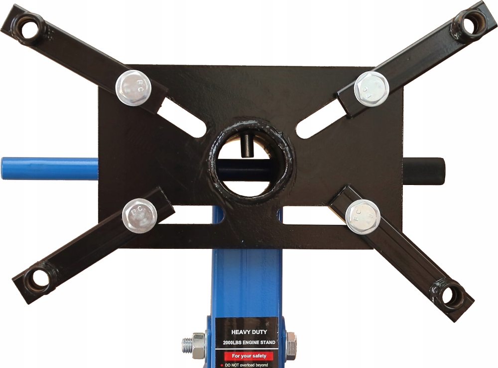 Підставка за допомогою 4 регульованих вушок, встановлених на блок або корпус, дозволяє встановити двигун, коробку передач або головку для подальшої обробки. Підставка встановлена на 6 металевих колесах (4 поворотних), що дозволяє її вільно переміщати. Монтажна пластина є знімною, що дозволяє повертати встановлений елемент на 360° і захищати його від довільного обертання.