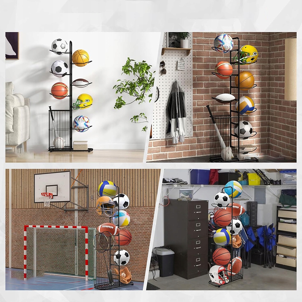 - Цей органайзер для спортивного спорядження можна використовувати в різних приміщеннях, таких як гаражі, підвали, спортзали та навіть будинки.
