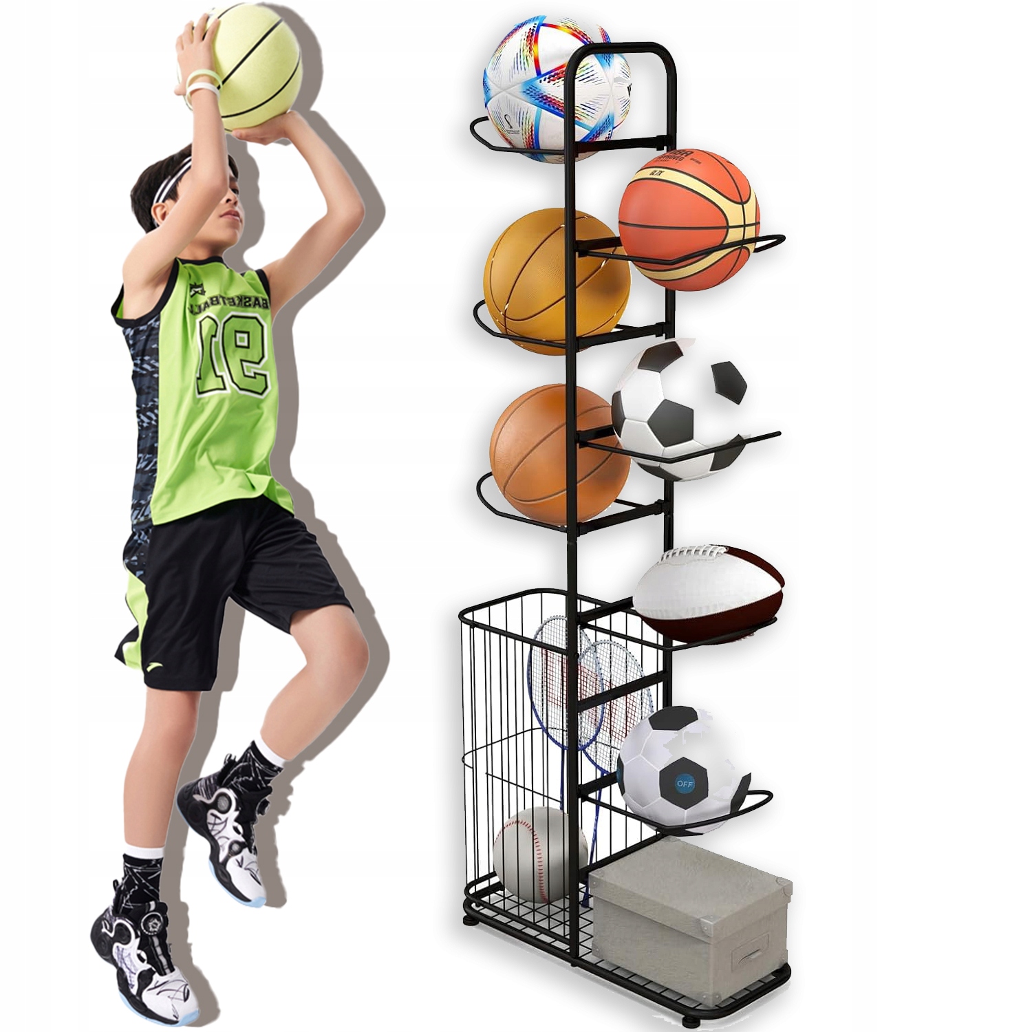 Приобретая «ПОЛКА ДЛЯ ШАРОВ РУЧКА-ОРГАНИЗАТОР ДЛЯ ХРАНЕНИЯ 7 МЯЧОВ С КОРЗИНОЙ» данный товар из каталога «Корзины, доски и обручи» вы можете быть уверены, что после оформления заказа, доставки в Украину, вы получите именно то, что заказывали, в оговоренные сроки и европейского качества.