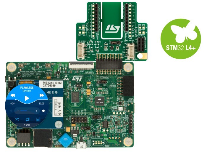 STM32L4R4R9I-DISCO Тарілка-це багатий розробник з Microcontroller з Arm Cortex STM32L4R9AI. Завдяки інноваційним способам зменшення споживання електроенергії, оперативної пам’яті потужністю 640 кб, вбудованим графічним копроцесором Chrome та контролером DSI, пропонованим мікроконтролером, набір дозволяє легко прототипувати багато додатків, особливо аудіо, відео та пропонувати низьке споживання електроенергії.