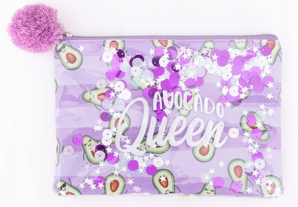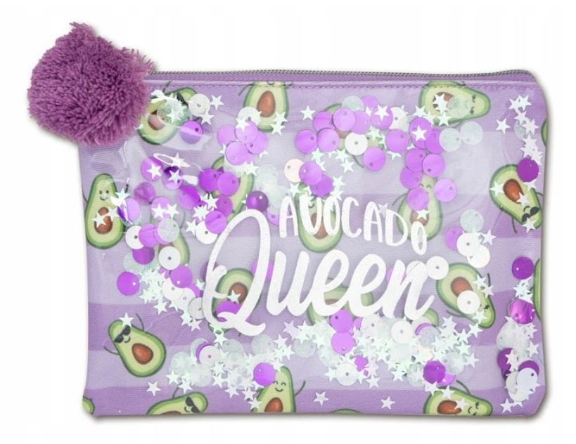 одиночний -чамер -бексадо, зроблений із зеленого матеріалу в моді Avocado. Передня частина косметолога має прозору накладку з барвистими конфетті. У космелет є срібний напис "ти такий зайвий". Класник закритий на повзуні. Зелений помпом кріпиться до повзунка. Розміри косметолога: 22 х 16 х 1 см.