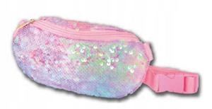 Стильна поясна сумка з голографічними блискітками - чудовий аксесуар для кожної маленької модниці. Хіпстер дозволяє заховати дрібні необхідні речі, такі як ключі та гаманець, щоб не втратити їх на дитячому майданчику. Оснащений легко регульованим ремінцем, який застібається на пряжку. Ви можете носити його двома способами: на стегнах або модно накинутим навскоси через плече. Саше закривається на блискавку.