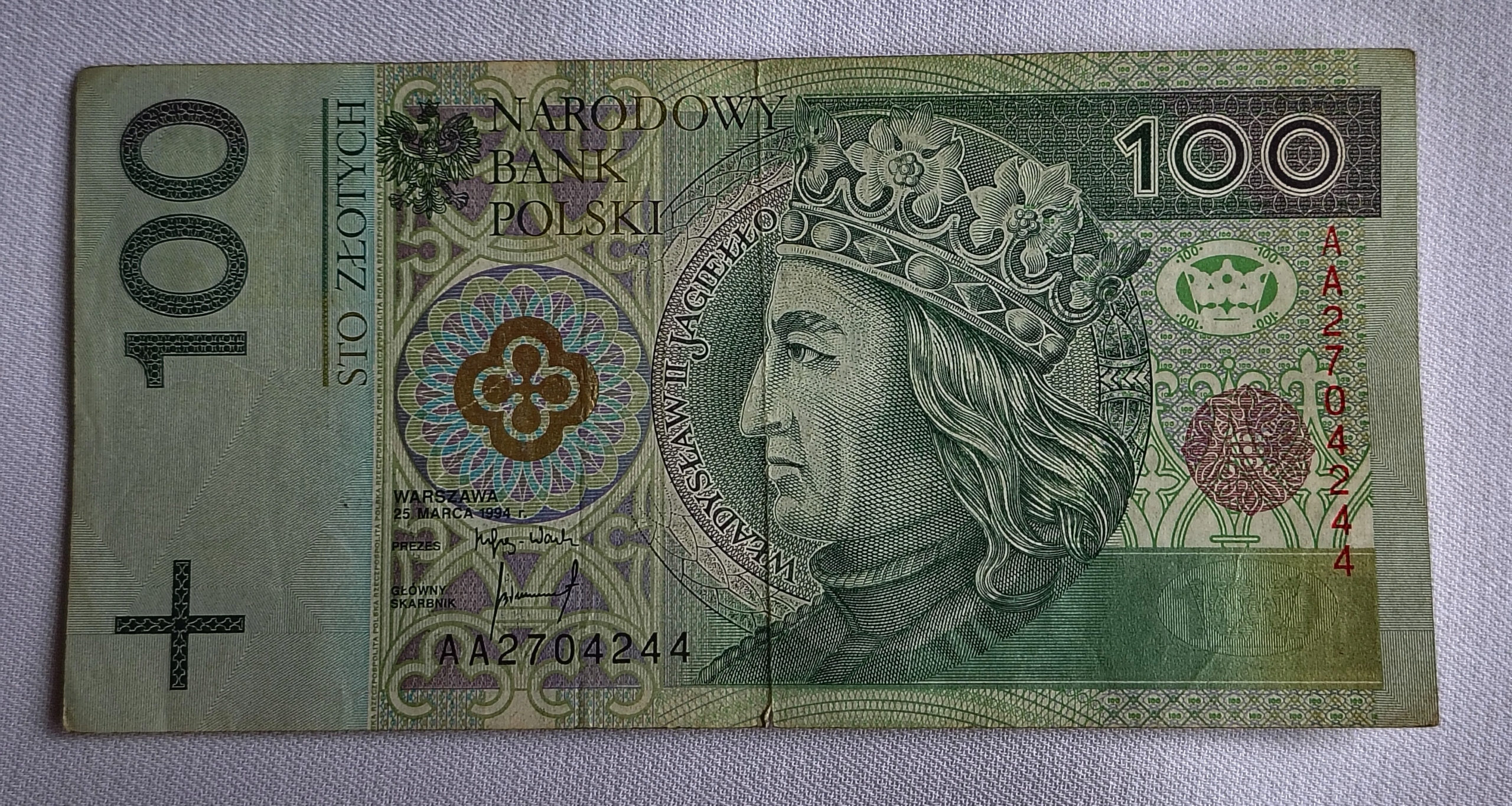 Сто Zlotys 100, Banknote First Series AA2704244, 1994, Рідко